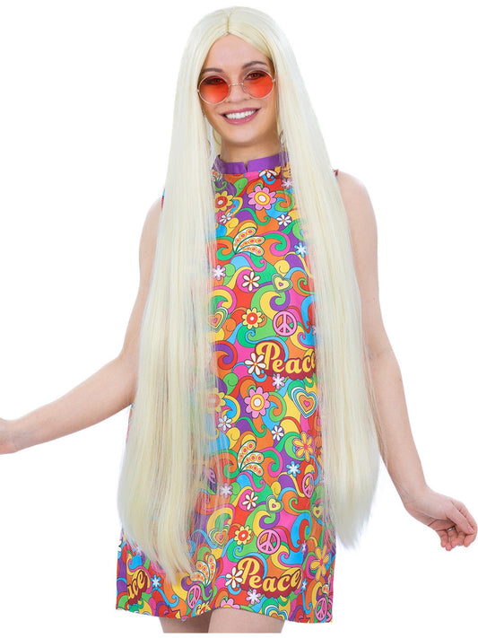 Hippie-Mädchen Kostüm, Mehrfarbig, Kleid mit Weste, Stirnband & Medaillon