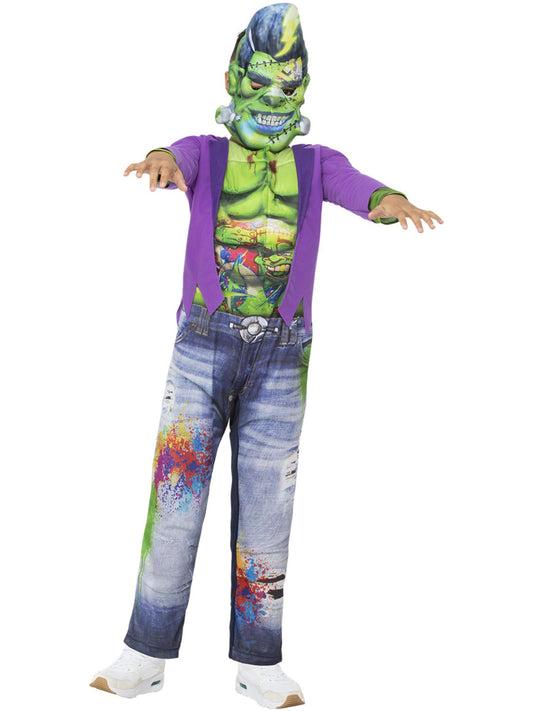 • Im Dunkeln leuchtendes Neonskelett-Kostüm, Einteiler & Maske