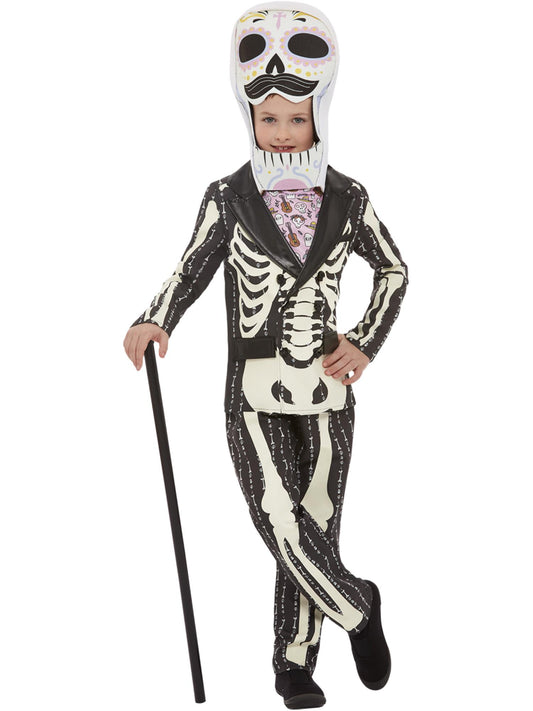 • Im Dunkeln leuchtendes Skelett-Kostüm, Mehrfarbig, mit Overall, Maske & Handschuhen
