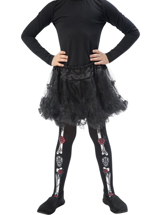 • Skelett-Strumpfhose, Kinder, Schwarz, Alter 6-12