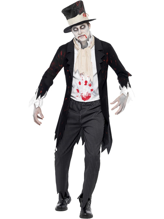 Schwester Zombie Kostüm, Schwarz, Kleid, Kopfbedeckung, Gürtel & Kreuzanhänger