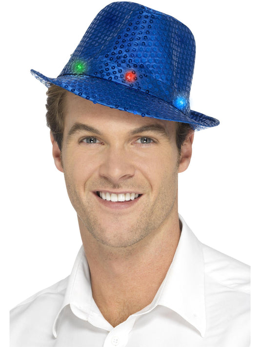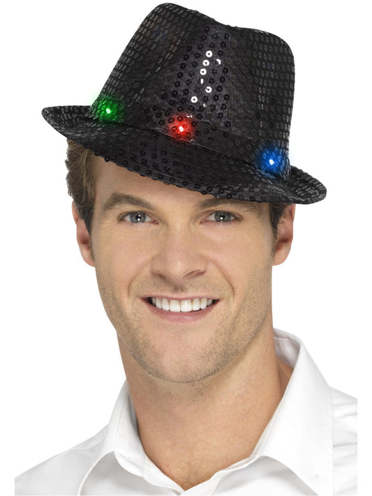 Leuchtender Pailletten-Trilby-Hut, Silber, mit LED-Multifunktionsleuchten
