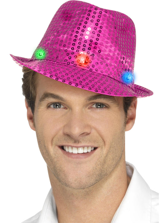 Leuchtender Pailletten-Trilby-Hut, Rot, mit LED-Multifunktionsleuchten