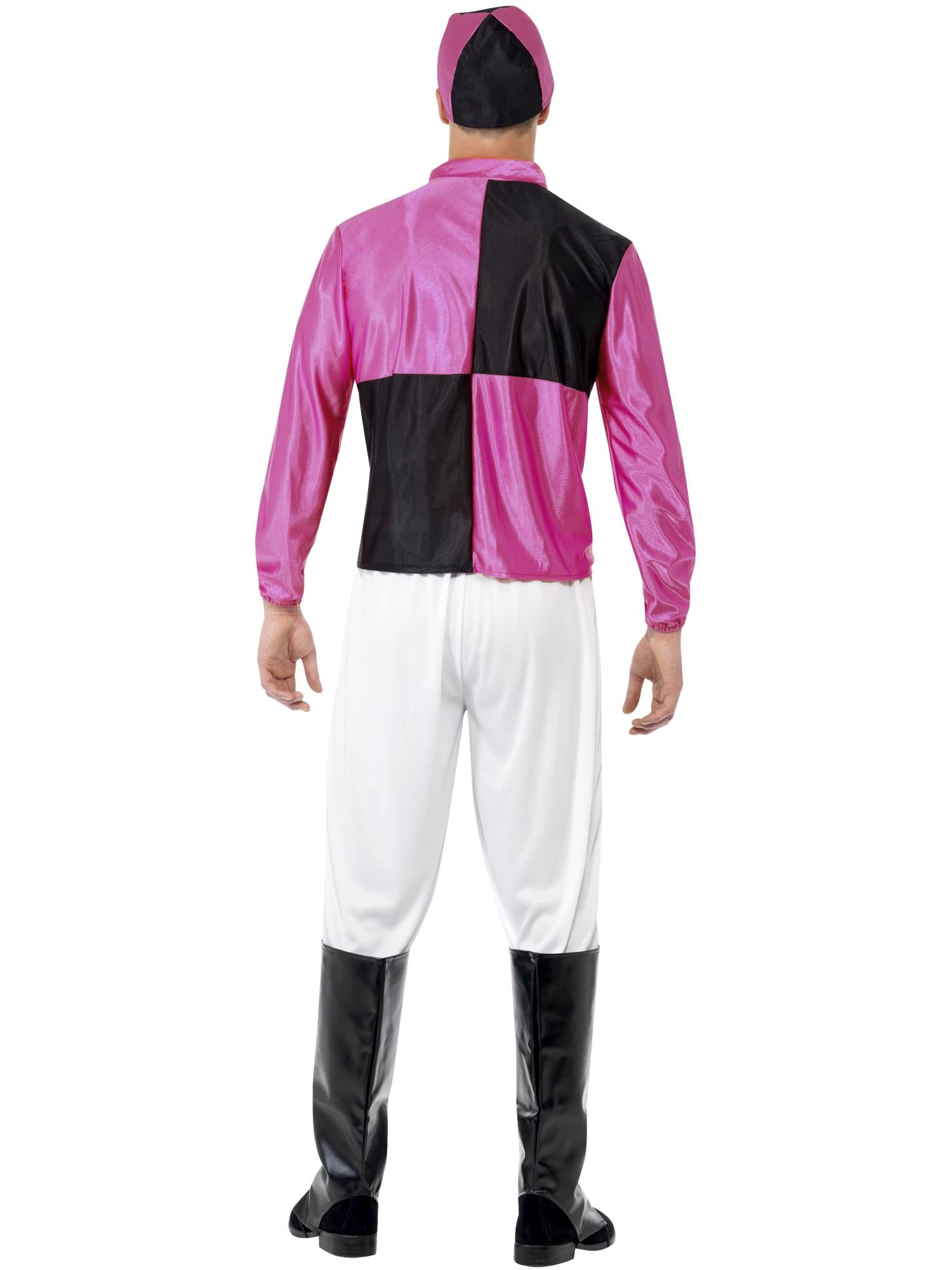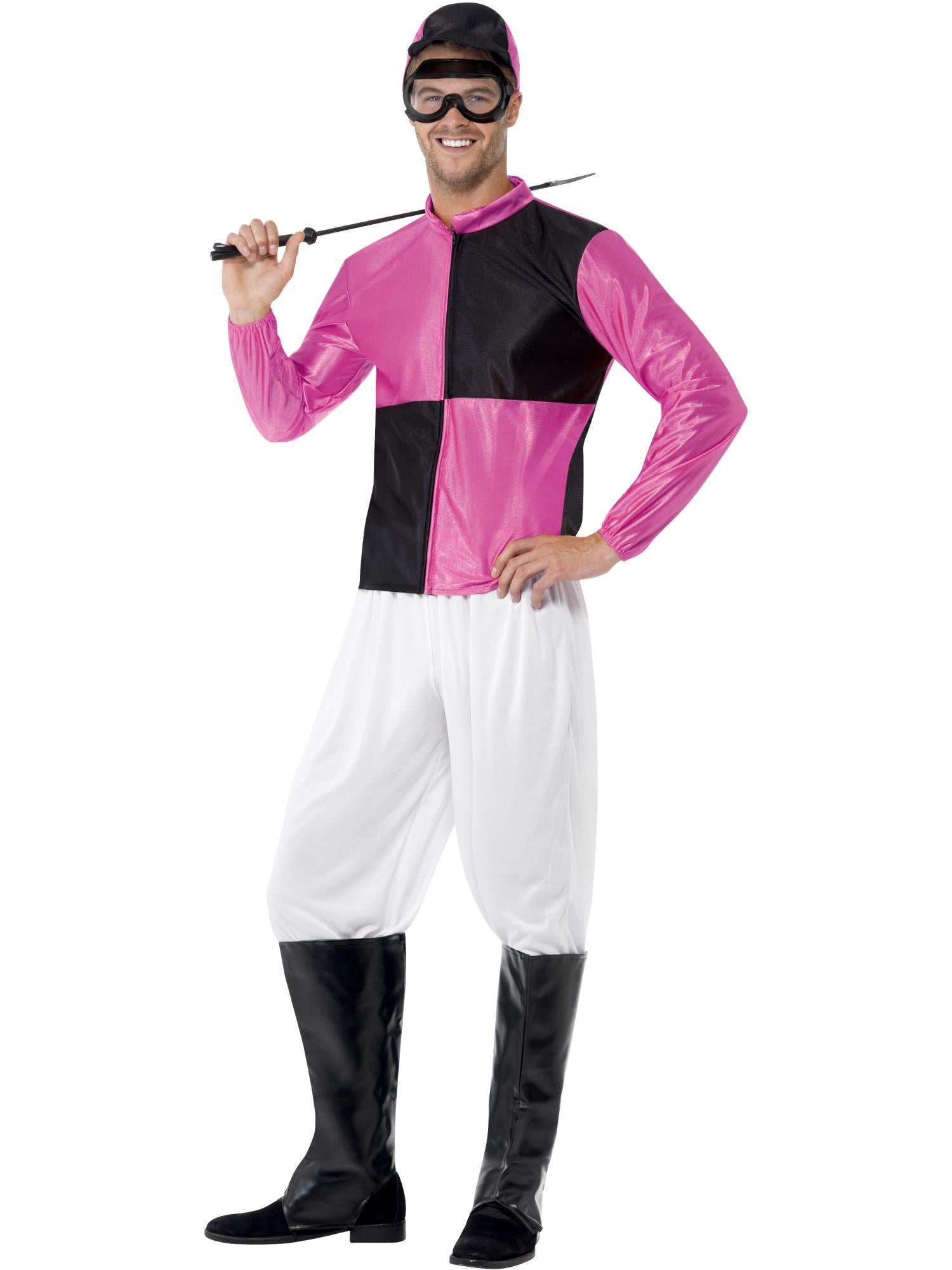 Jockey Costume, Pink & Black with Top, Trousers, Bootcovers, Hat & Goggles