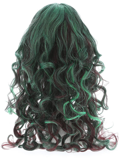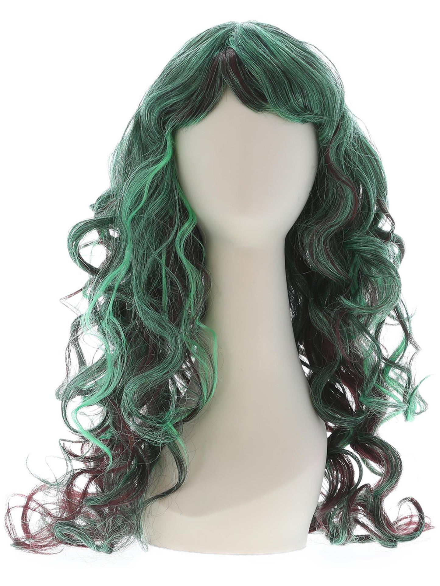 Perücke Bluttriefendes Monster, Grün und Purpur, Lang und lockig mit Fring