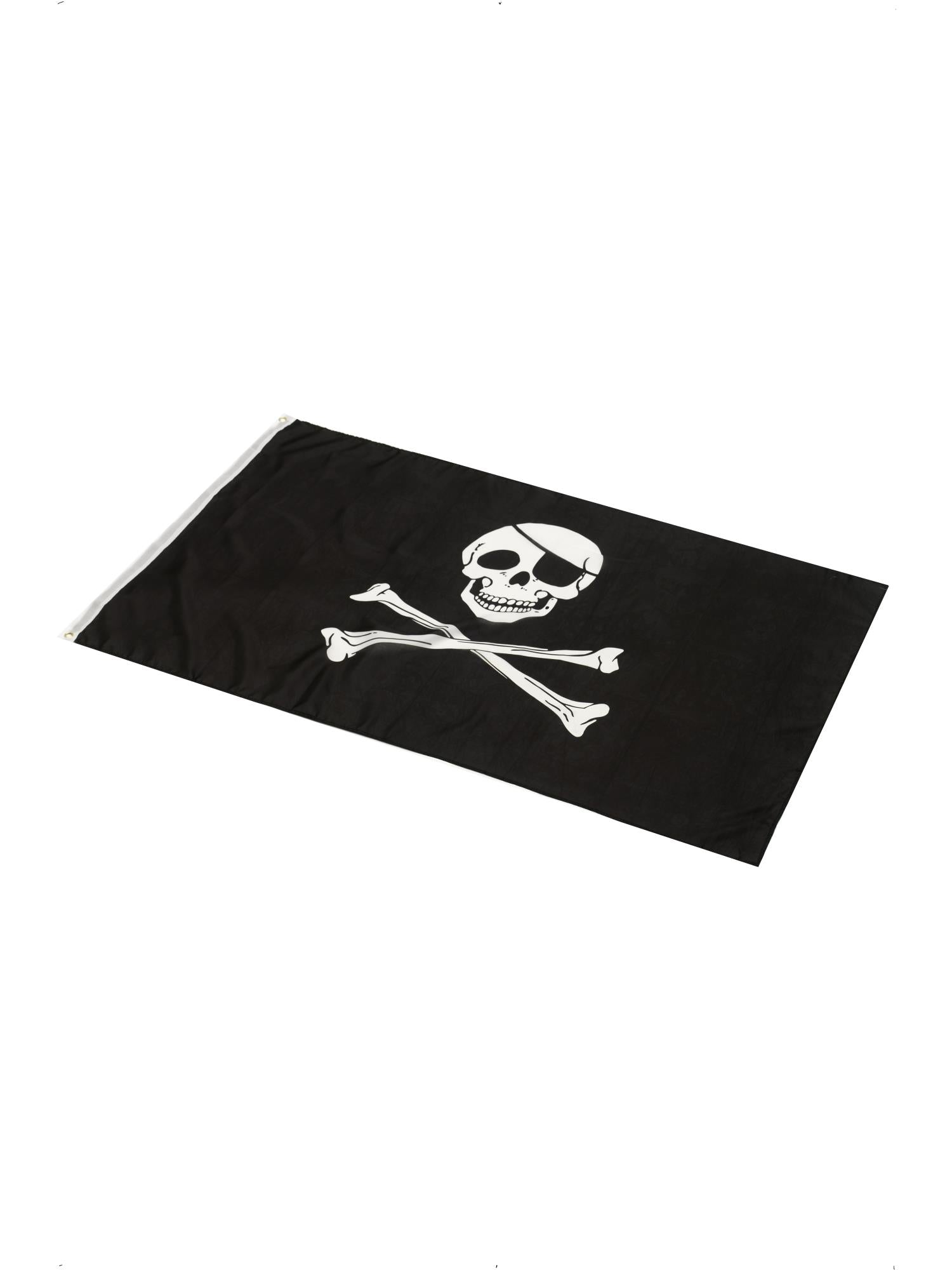 Pirate Flag, approx 152x91cm / 60x36in, Black with Large Skull & Crossbones Print