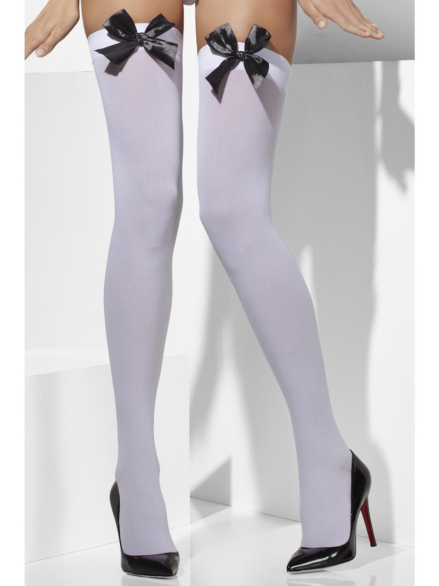 Opaque Hold-Ups, White with Black Bows