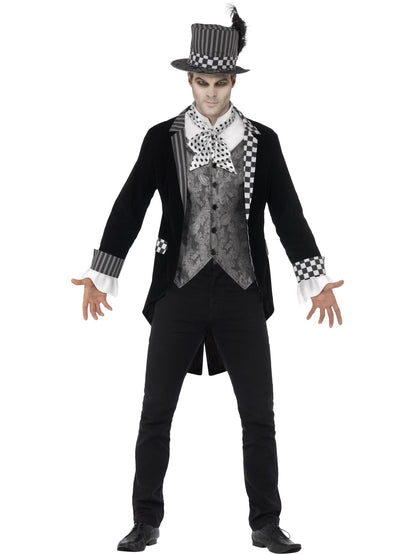 Deluxe Dark Hatter Costume, Black with Jacket, Mock Shirt & Top Hat