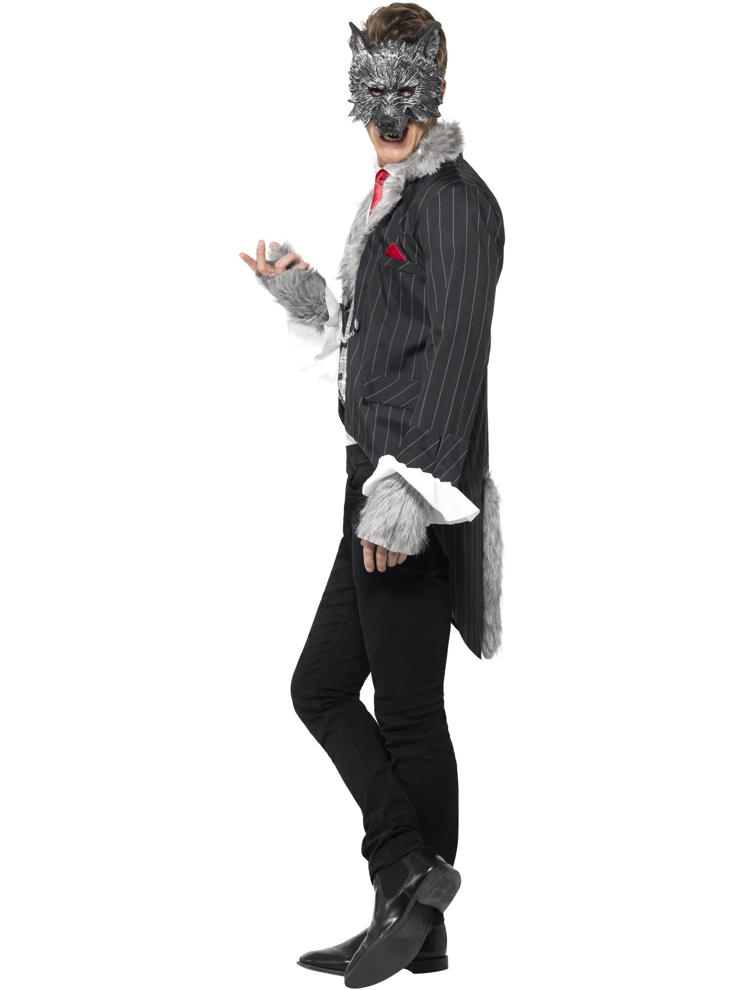 Großer Böser Wolf-Kostüm, Deluxe, Grau, mit Jacke, abnehmbarem Schwanz, vorgetäuschtem Hemd, Maske und Handschuhe