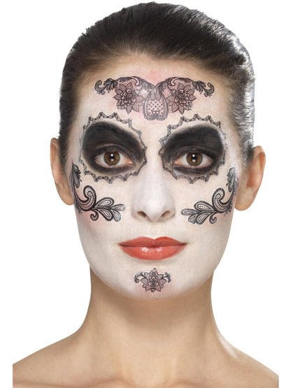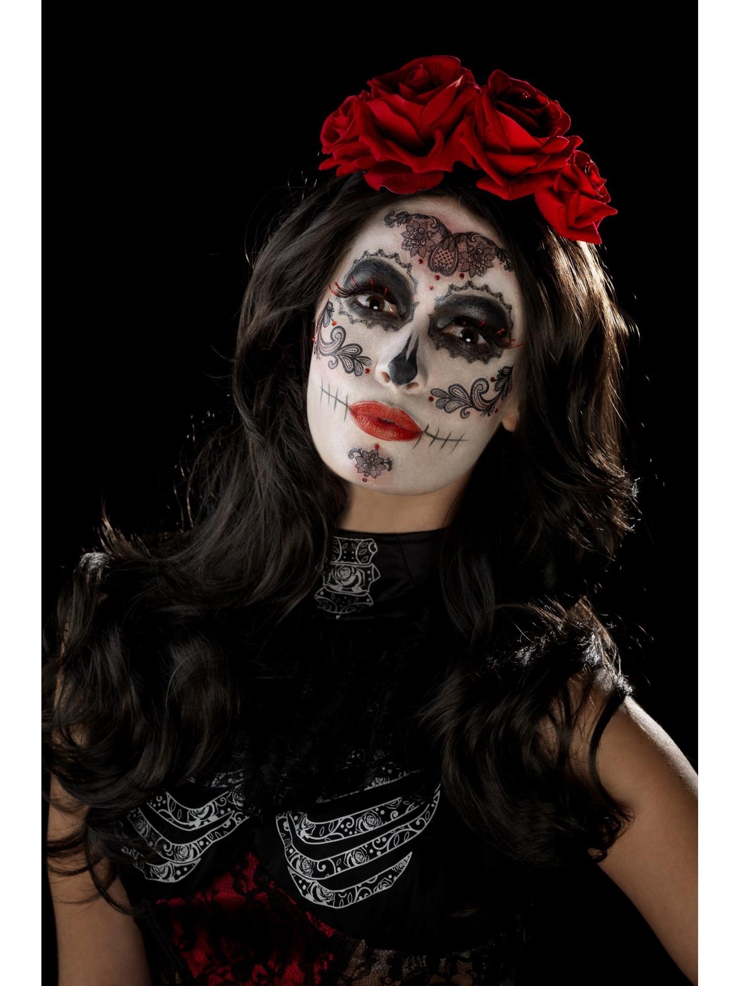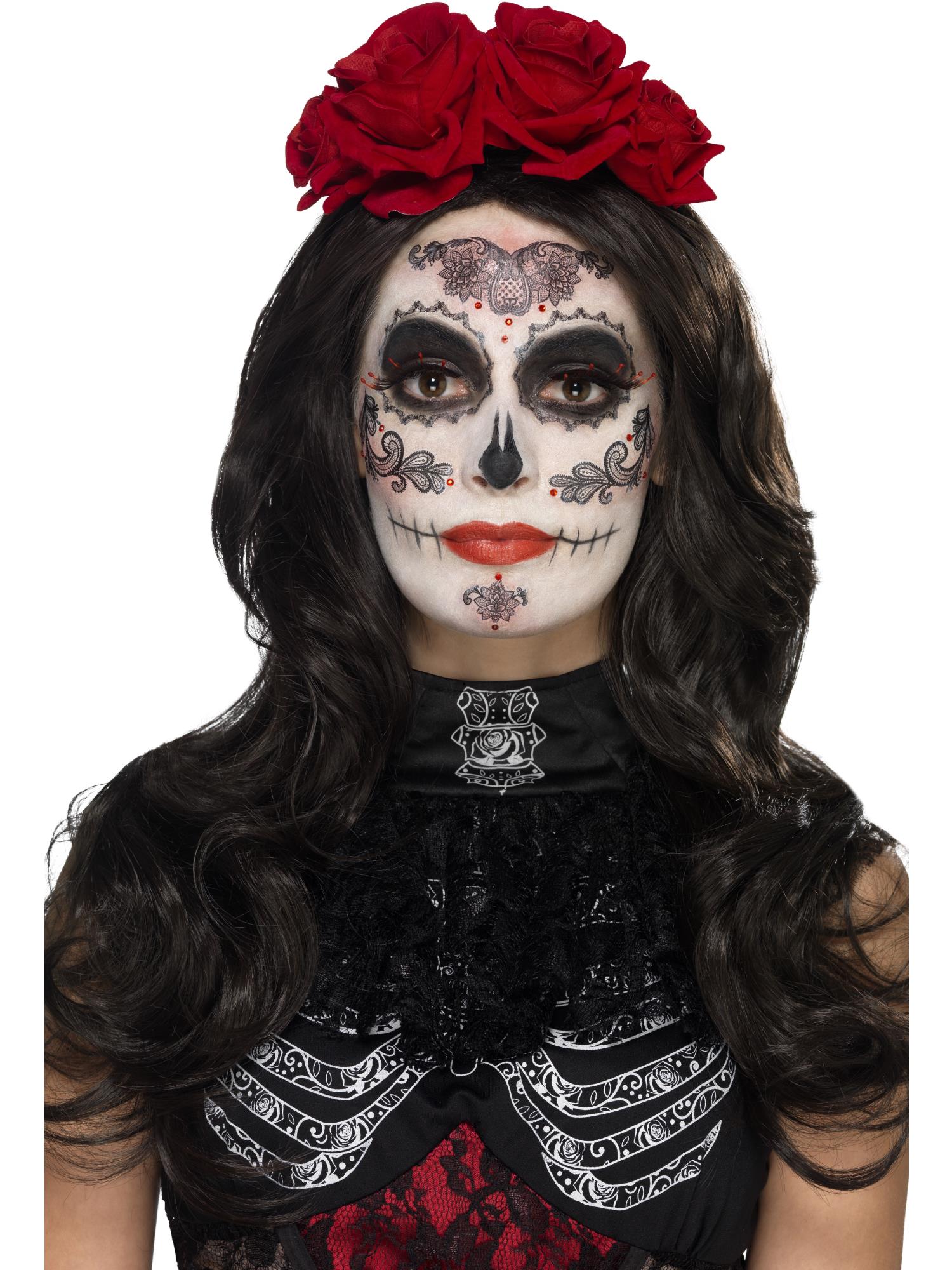 Tag der Toten Glamour-Make-up-Kit, Aqua,Schwarz, Transferfolien, Schminke, Wimpern, Schmuckund Applikatoren