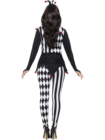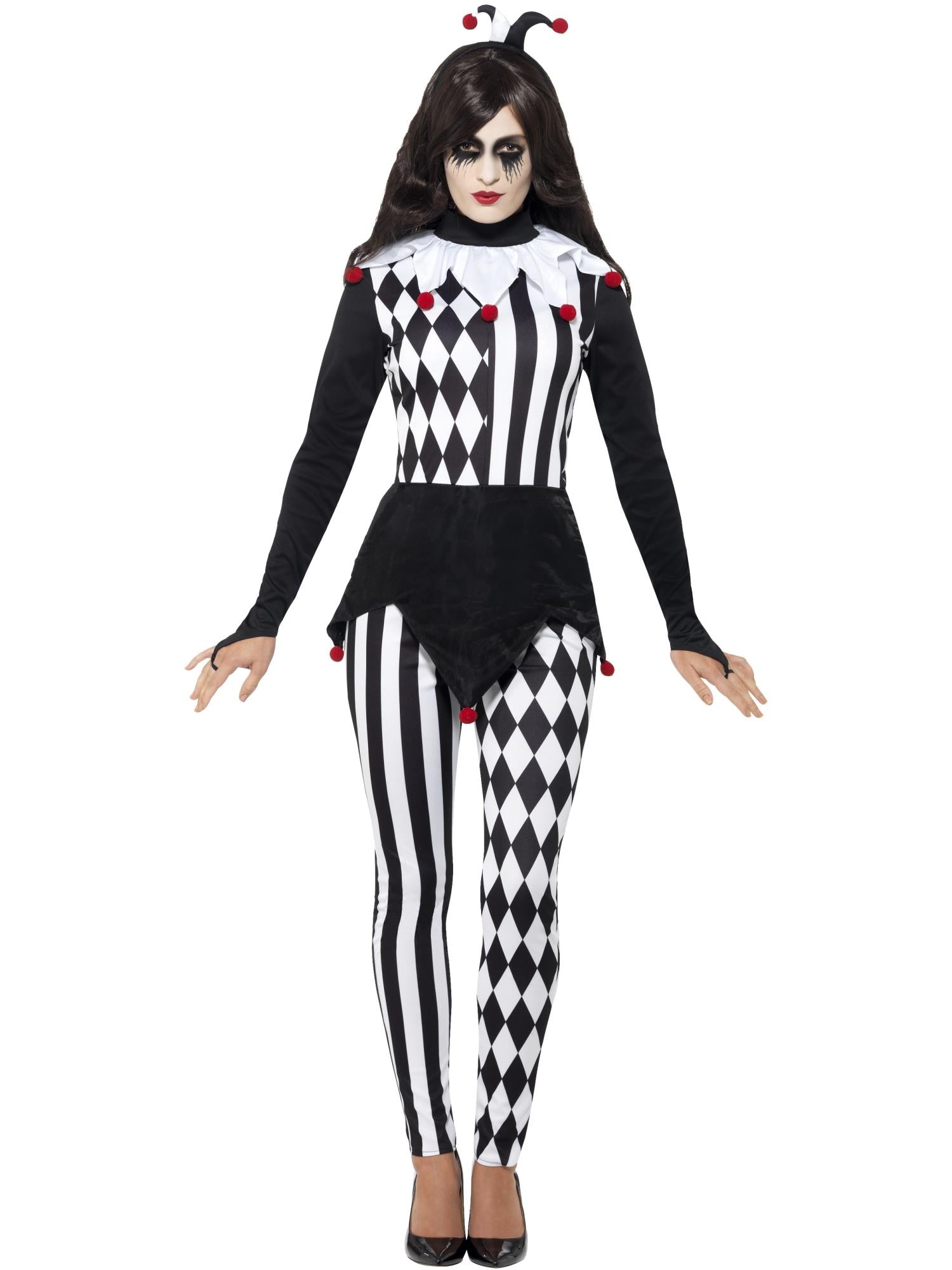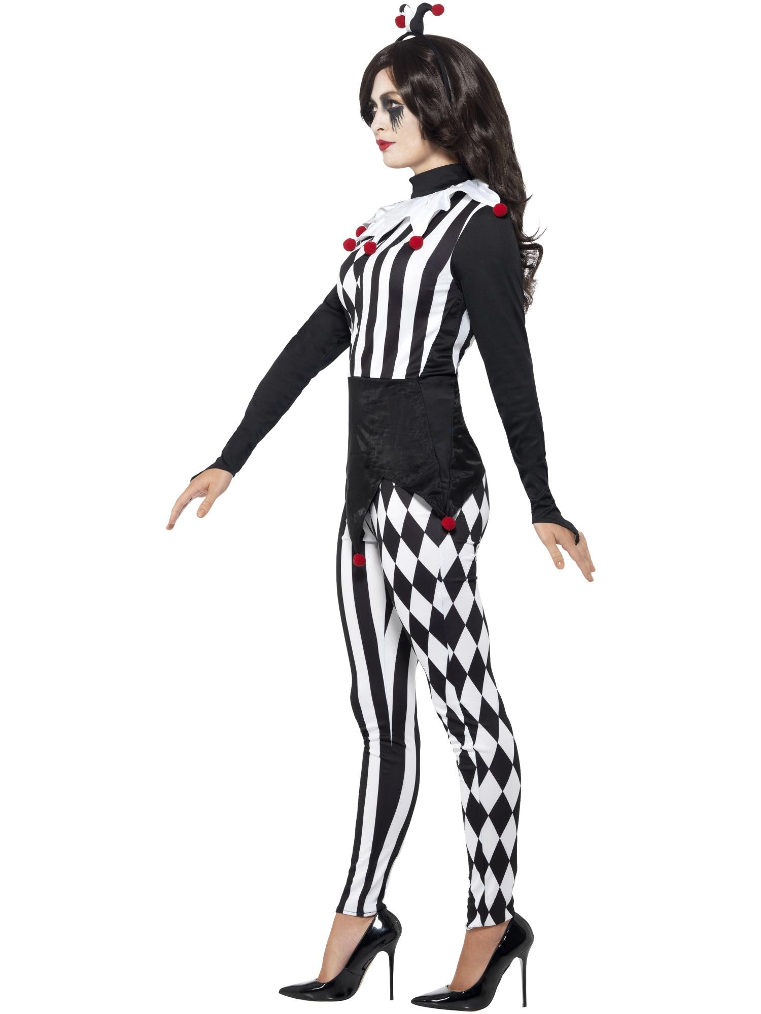 Narrenkostüm für Frauen, Schwarz, mit Oberteil, Leggings & Kopfbedeckung