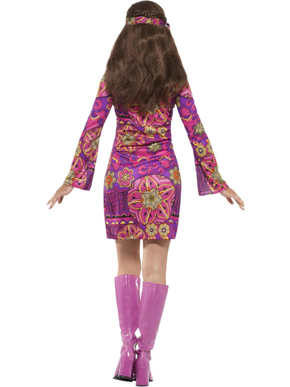 Hippie Chick Costume, Multi-Coloured with Dress, Headscarf & Medallion