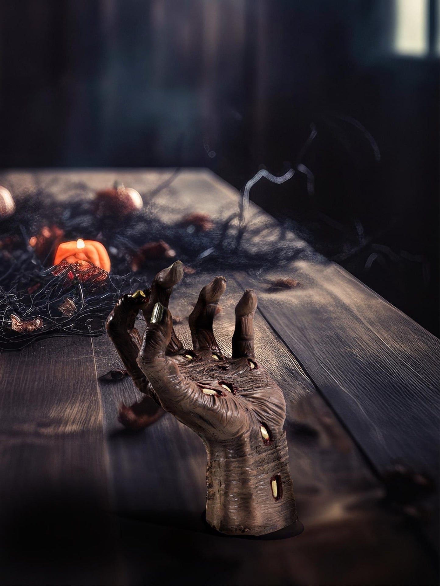 Latex Rotting Zombie Hand Prop, Natural with Suction Attachment, 21x10cm / 8x4in