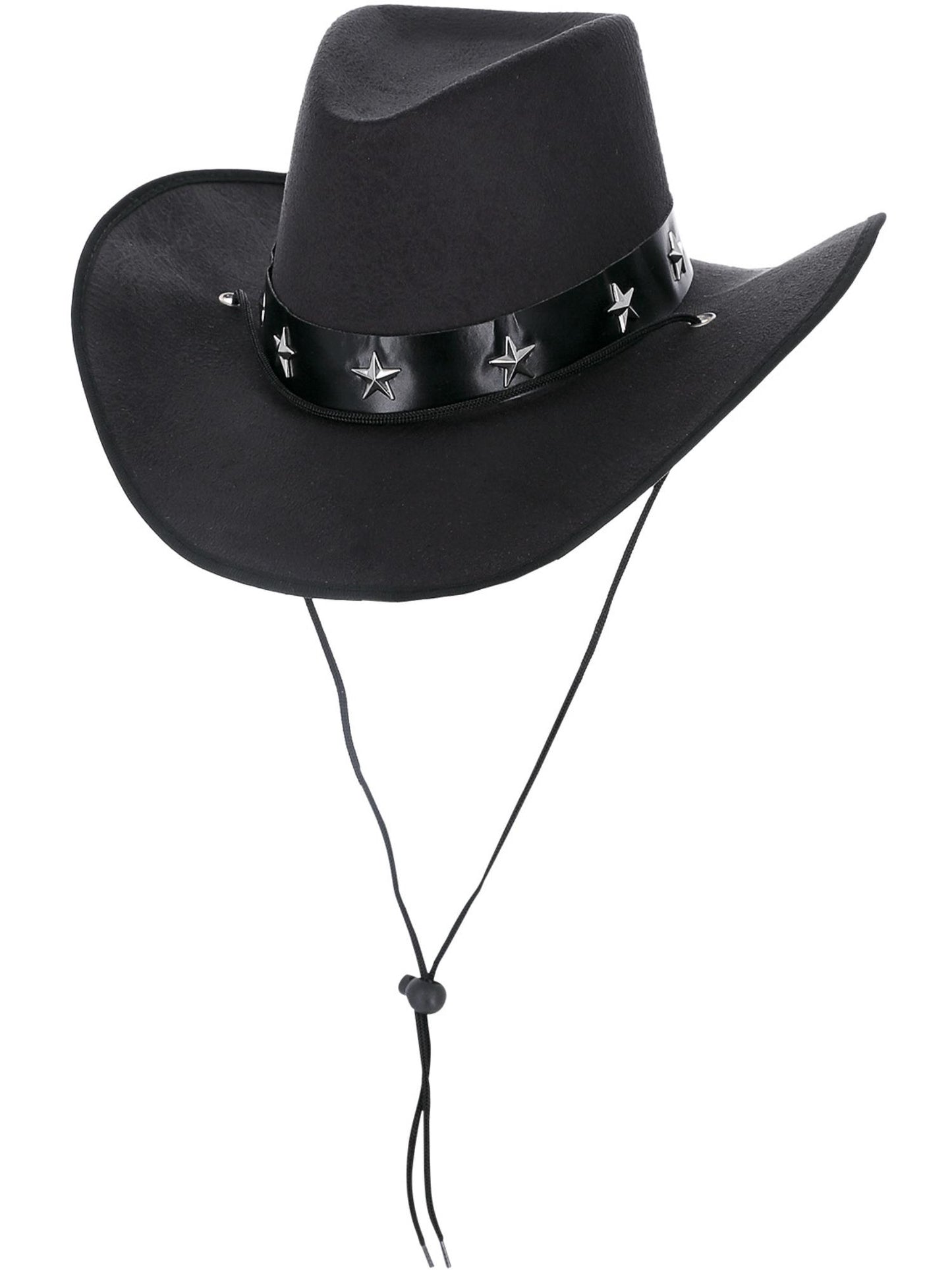 Schwarzer Western-Cowboyhut aus Kunstleder, mit Sterneband