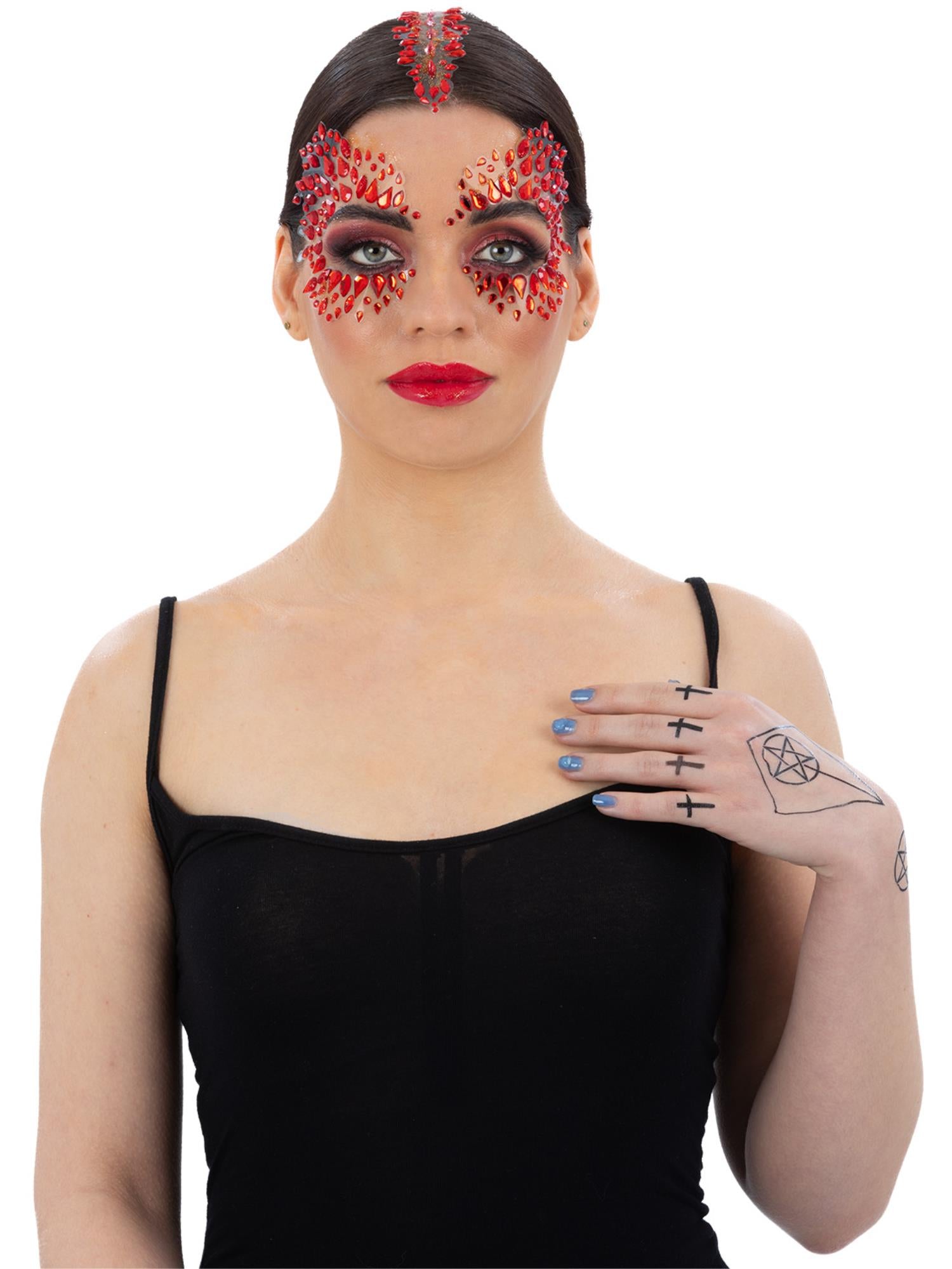 Smiffys Make-Up FX, Deluxe Devil Kit Satanic Tattoos, Face & Body Jewels & Glitter Pot