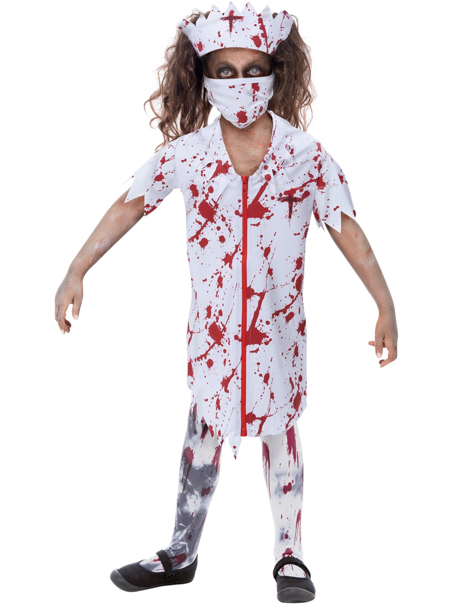 Zombie Nurse Girls Costume with Dress, Mask & Headband