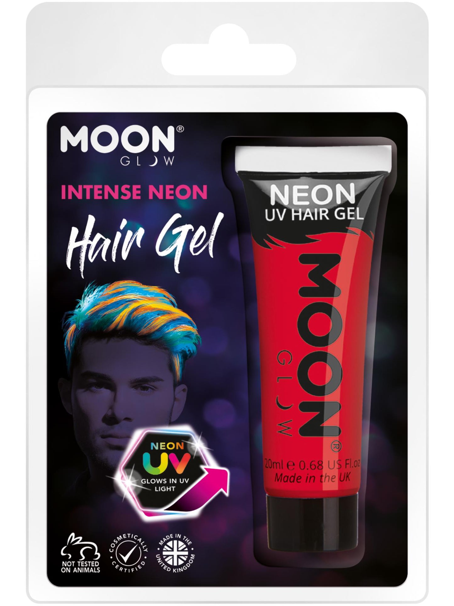 Moon Glow Intense Neon UV Hair Gel, Intense Red Clamshell, 20ml