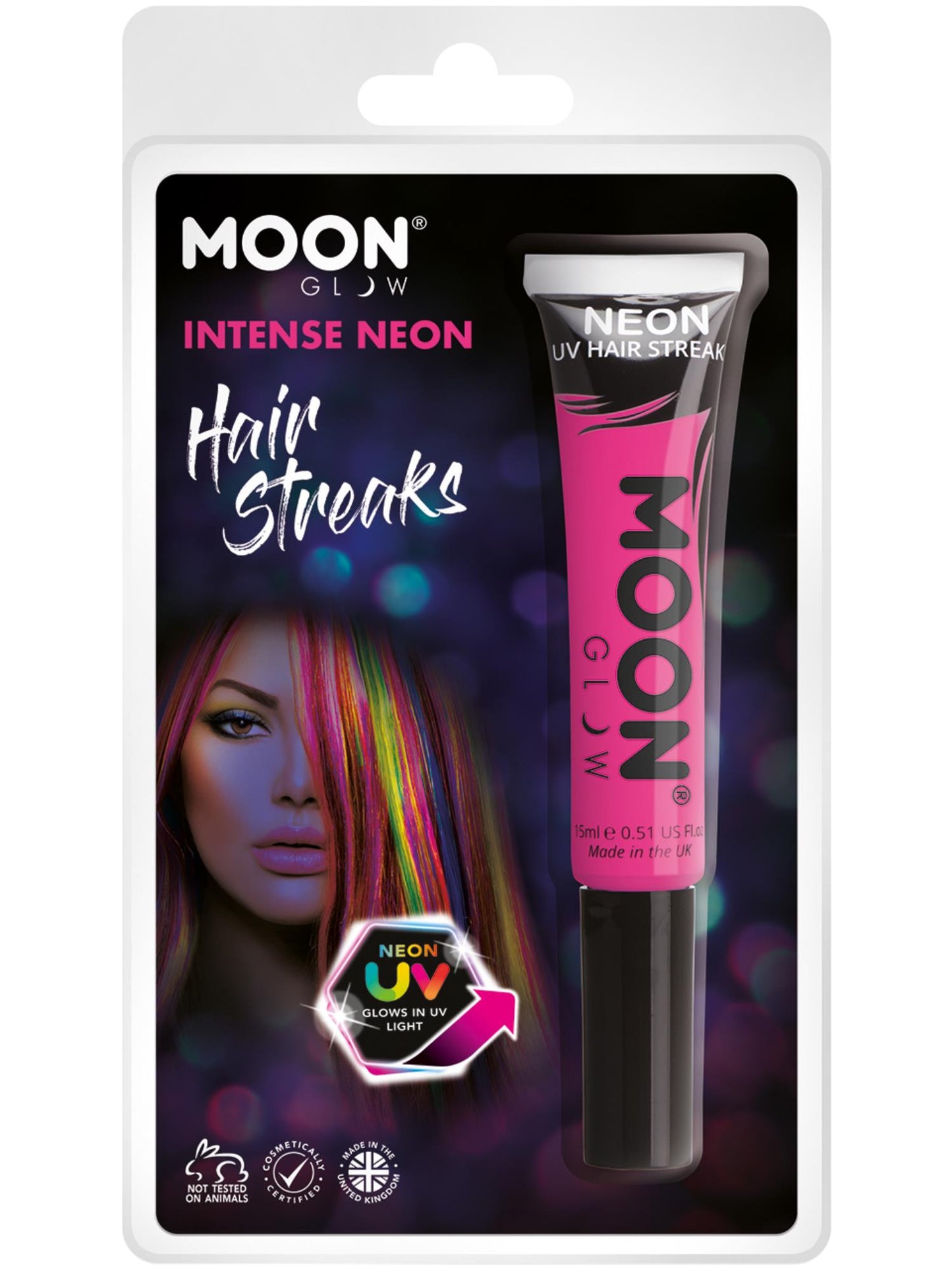 Moon Glow Intense Neon UV Hair Streaks, Intense Pi Clamshell, 15ml