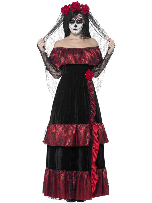Disfraz de chica deluxe del día de muertos, Negro, con vestido y diadema