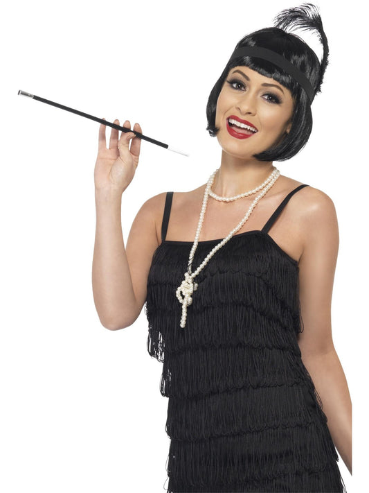 • Kit de accesorios de los años 20 de lujo, Negro y dorado, Guantes, porta cigarrillos, diadema y estola