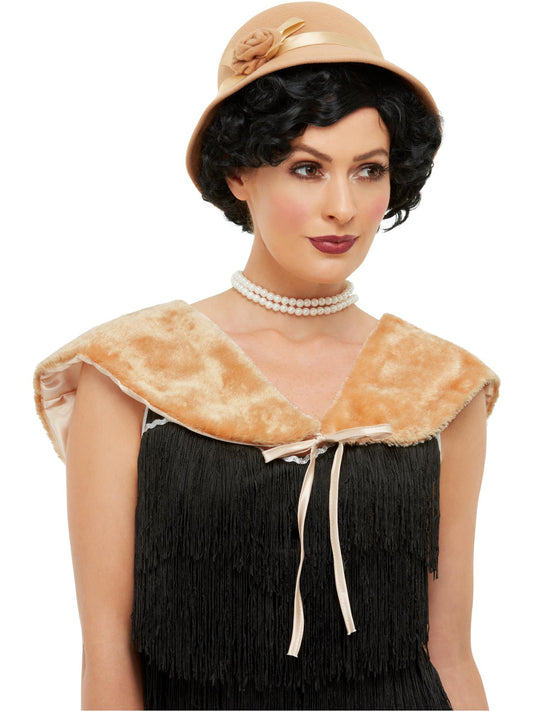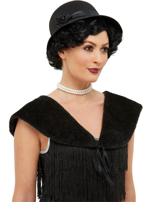 • Peluca charlestón, rubia, rizada con banda de lentejuelas para el pelo