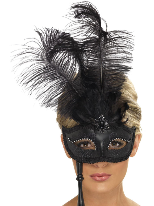 • Máscara ornamentada Colombina de pluma, negro
