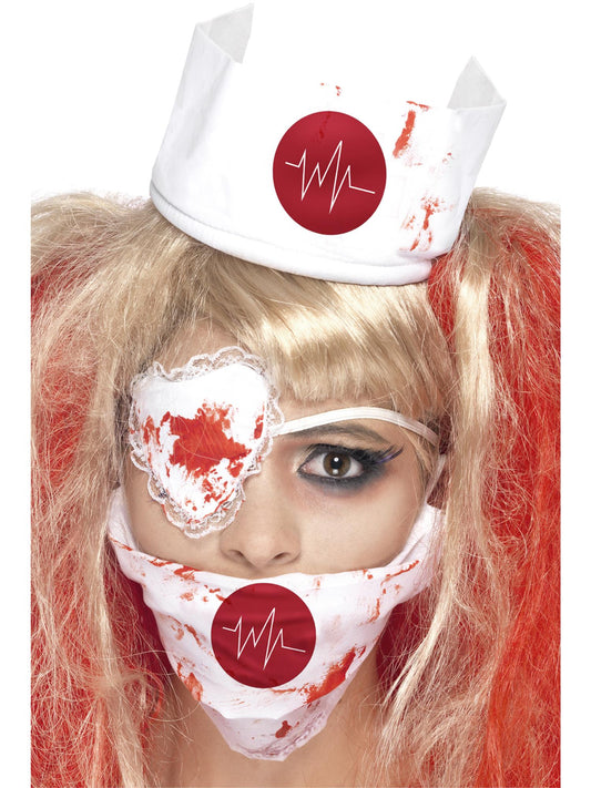 • Kit de enfermera sangrienta, con careta, adorno para la cabeza y parche, efecto sangriento