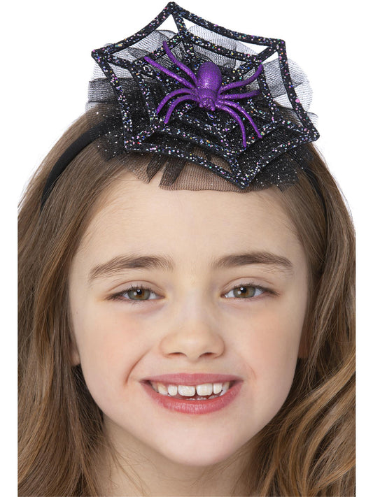 Telaraña de fibra de adorno pequeña, Blanca, con araña de plástico, 18g/0.63oz
