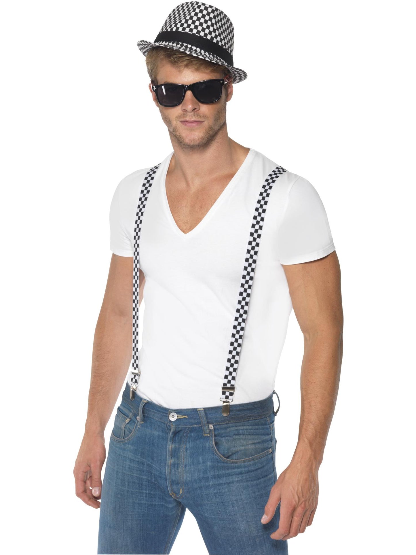 Ska Two Tone Instant Kit, Black & White with Braces and Hat
