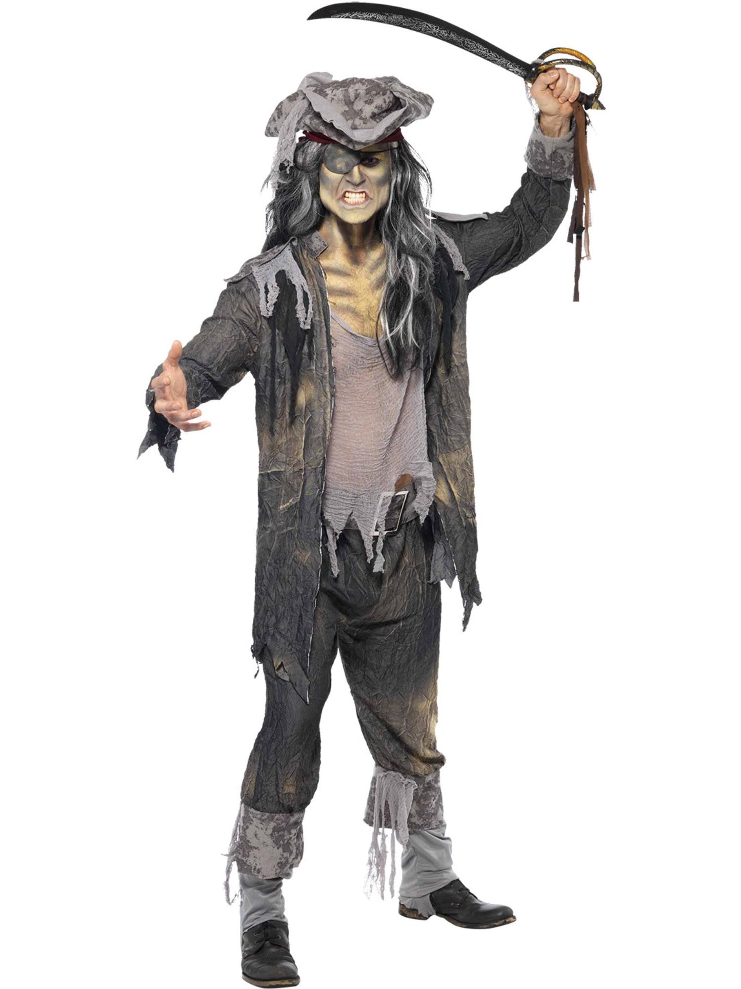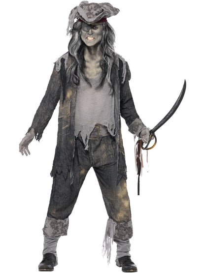 Deluxe Ghost Ship Ghoul Costume, Grey with Coat, Trousers and Hat