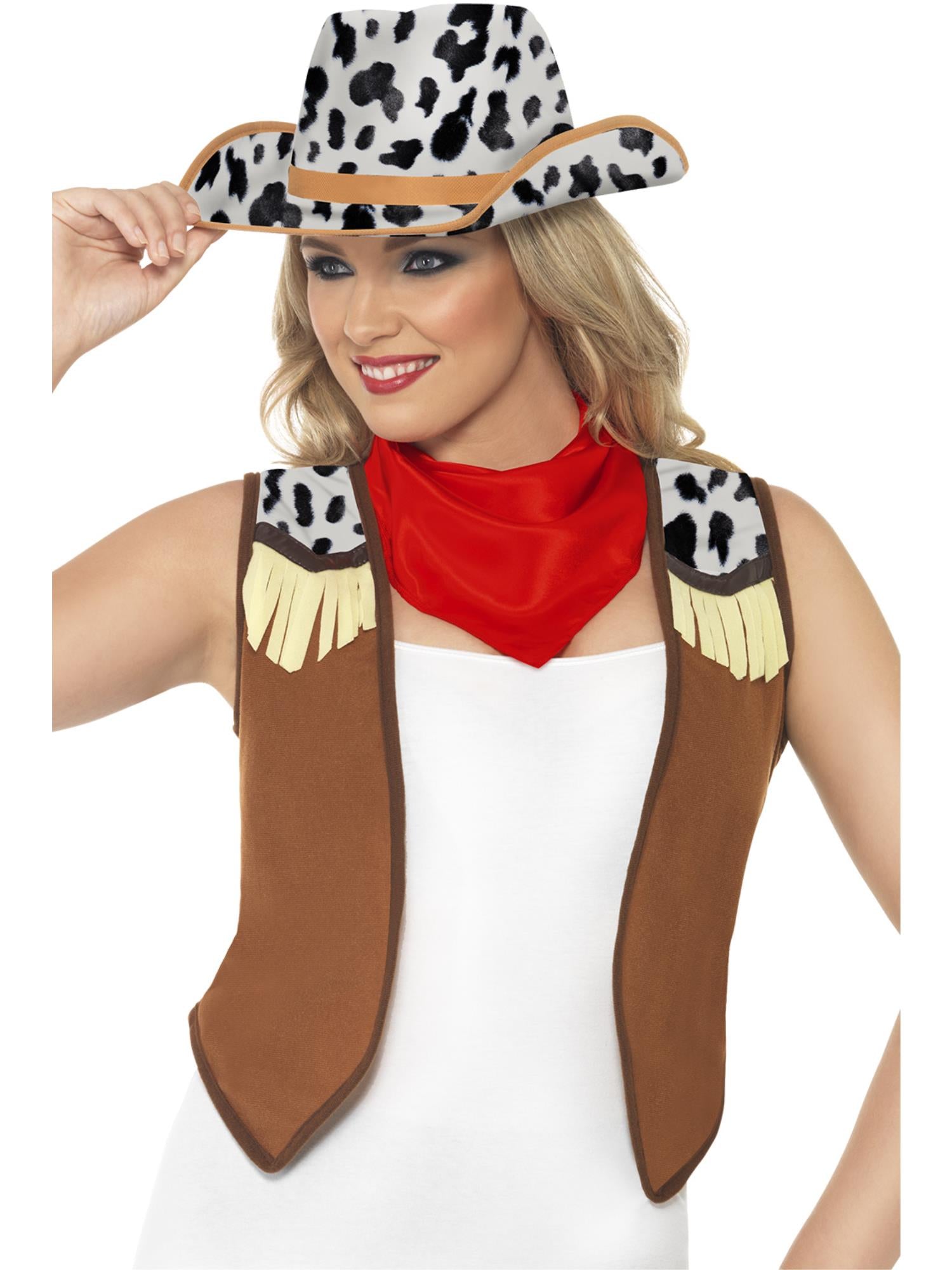 Instant Kit Wild West Female, Brown & White with Waistcoat, Neck Scarf and Hat