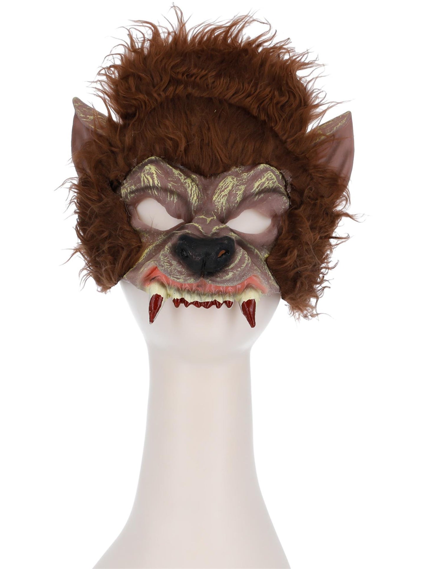 Werewolf Half Face Latex Mask, Brown with Fur & Teeth