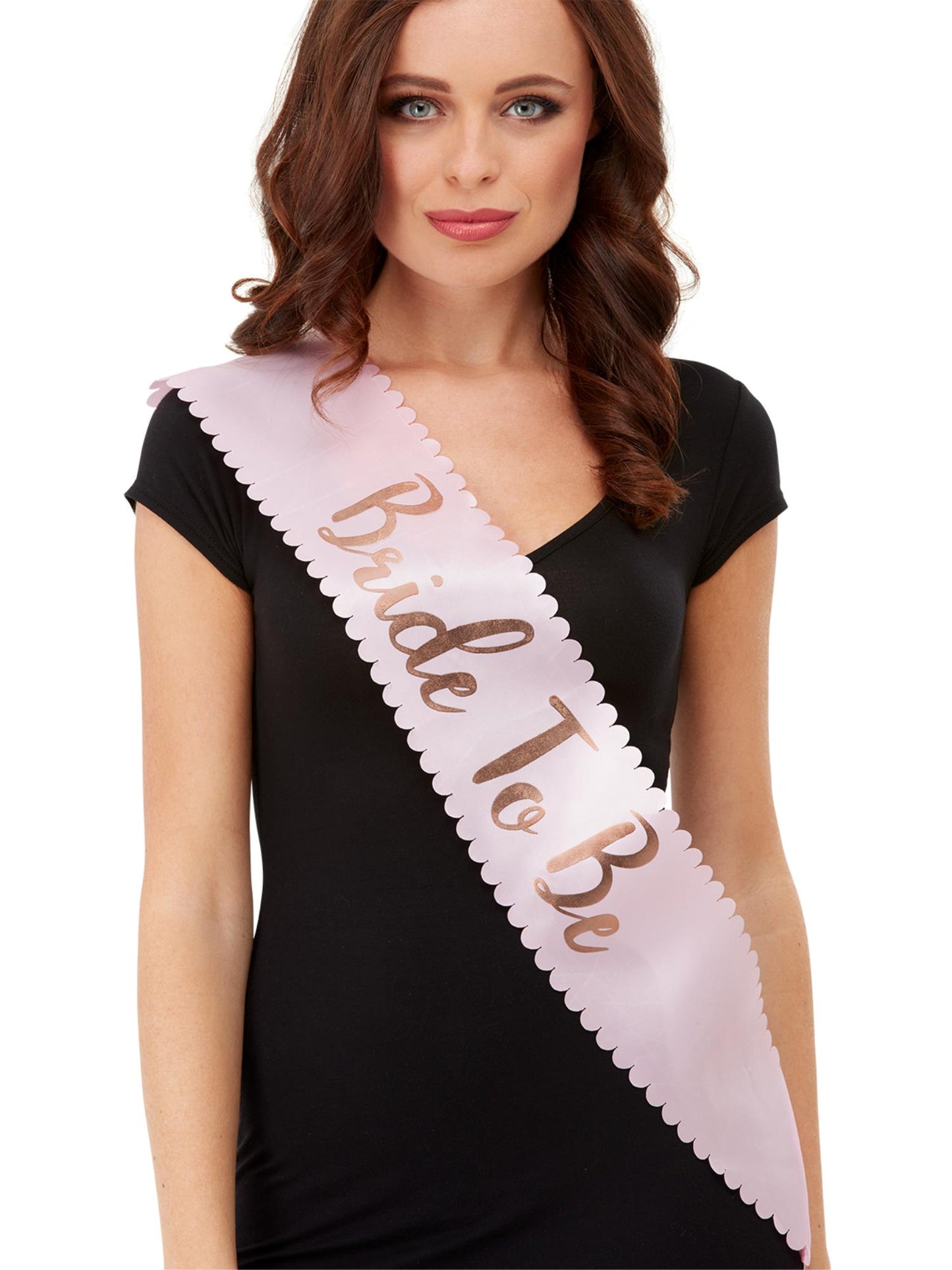 Bride To Be Sash, Pink & Gold with Scalloped Edge