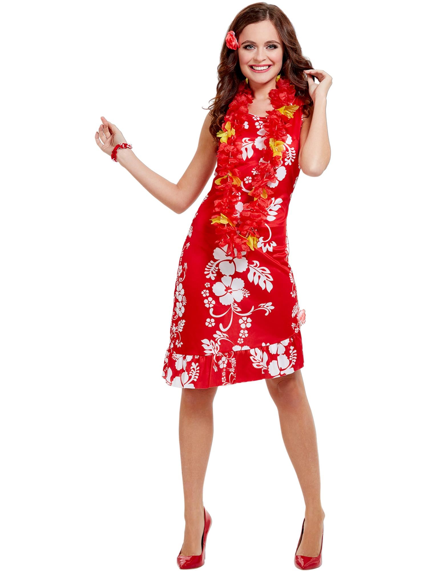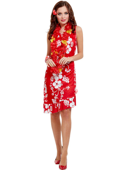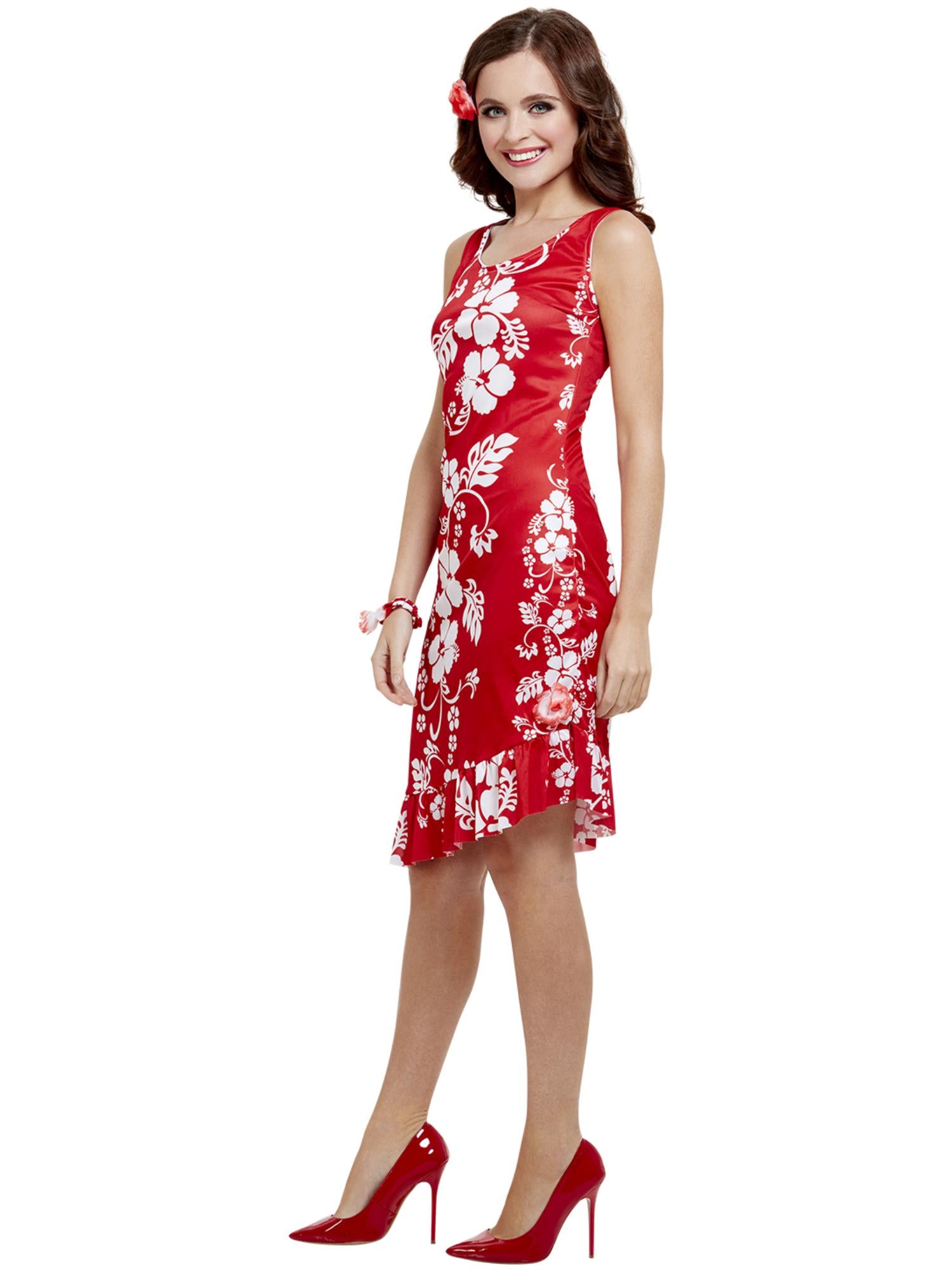 Hawaiian Beauty Costume, Red with Dress, Hairpiece and Bracelet