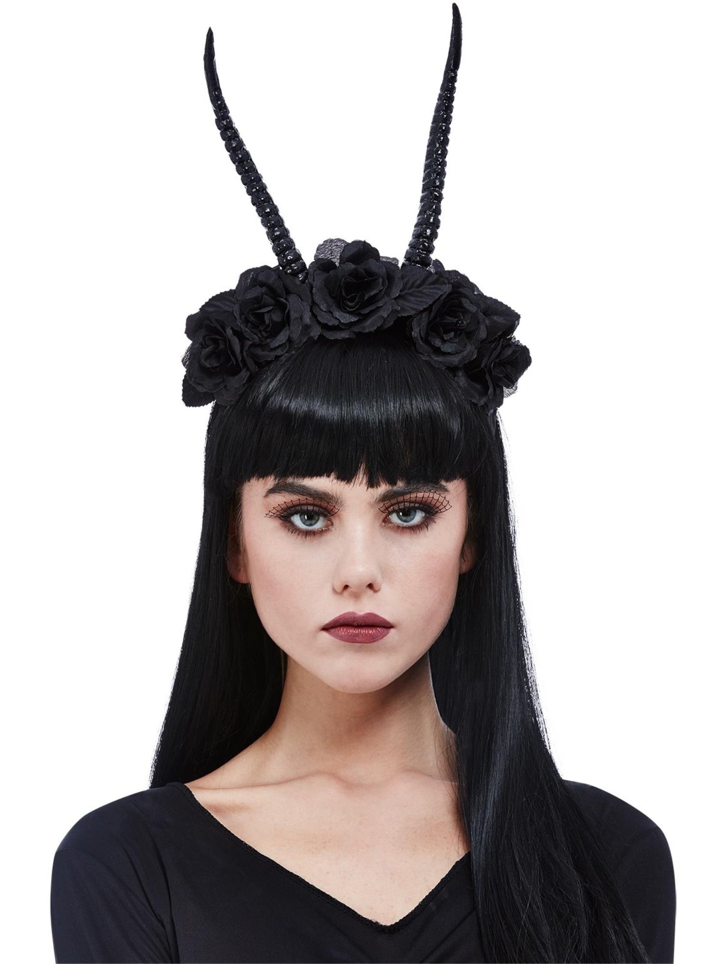 Diadema de flores y cuerno de demonio
