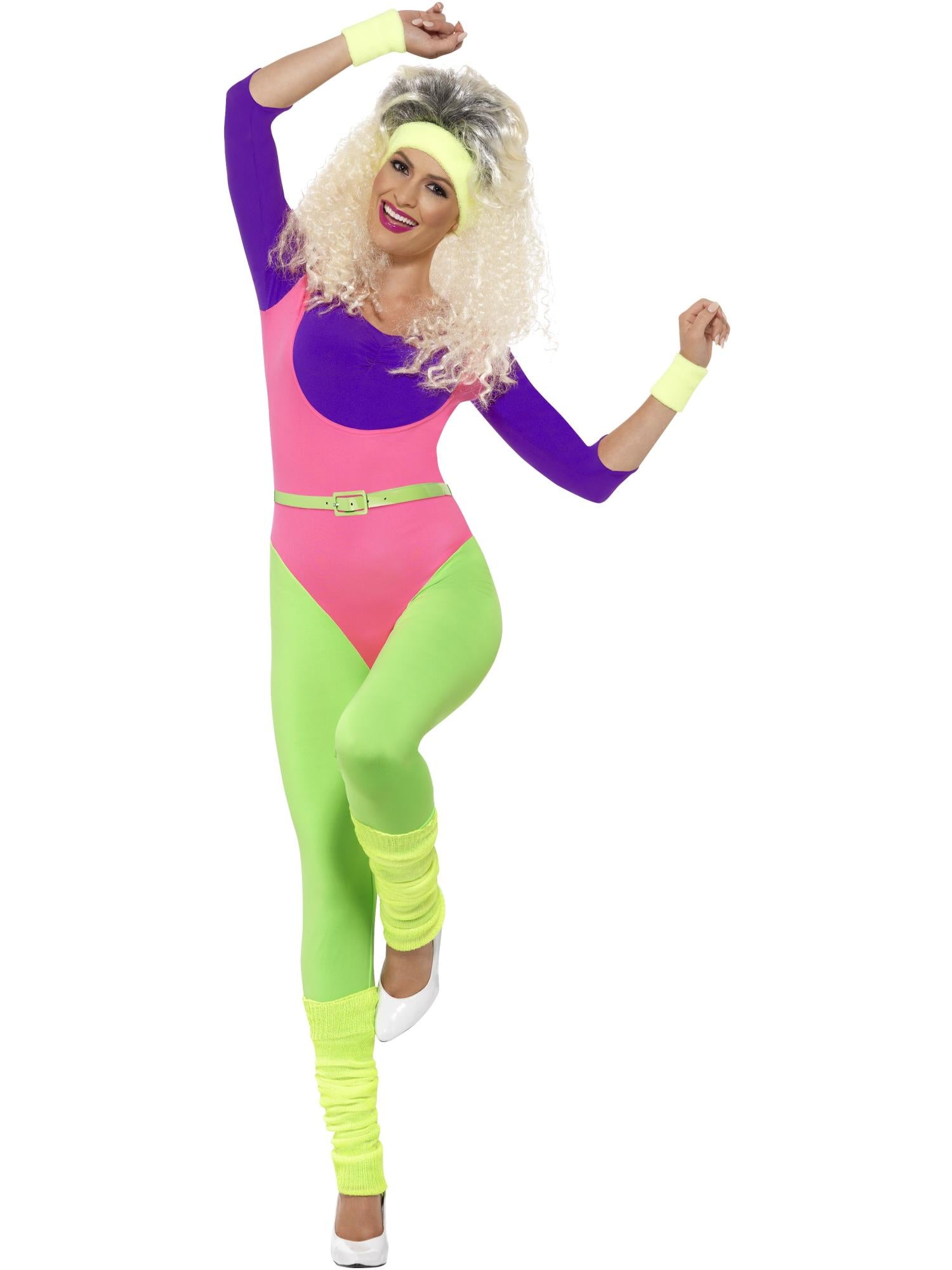 80s Work Out Costume, with Jumpsuit, Neon Headband and Wrist Cuffs