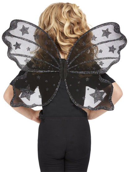 Dark Botanicals Butterfly Wings, 42cm/17in, Black with Glitter