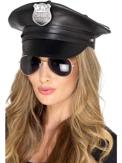 Sombrero de policía deluxe, Negro, Cuero de imitación, con borde interior elástico