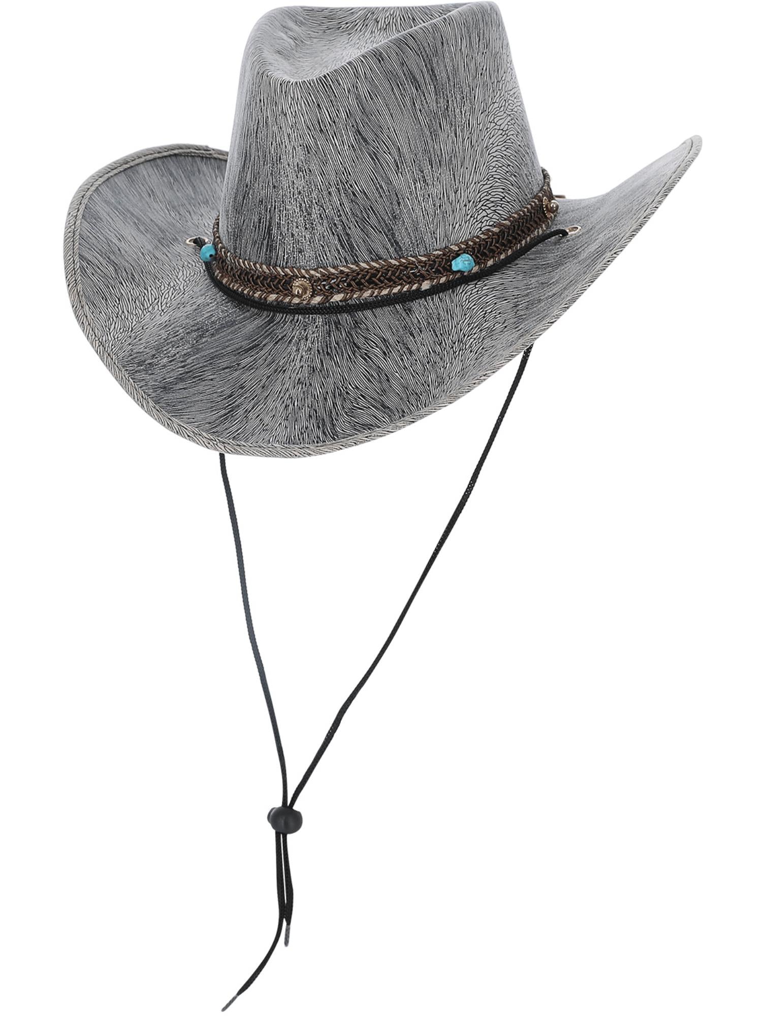 Sombrero de vaquero gris en cuero sintético, con banda de turquesa