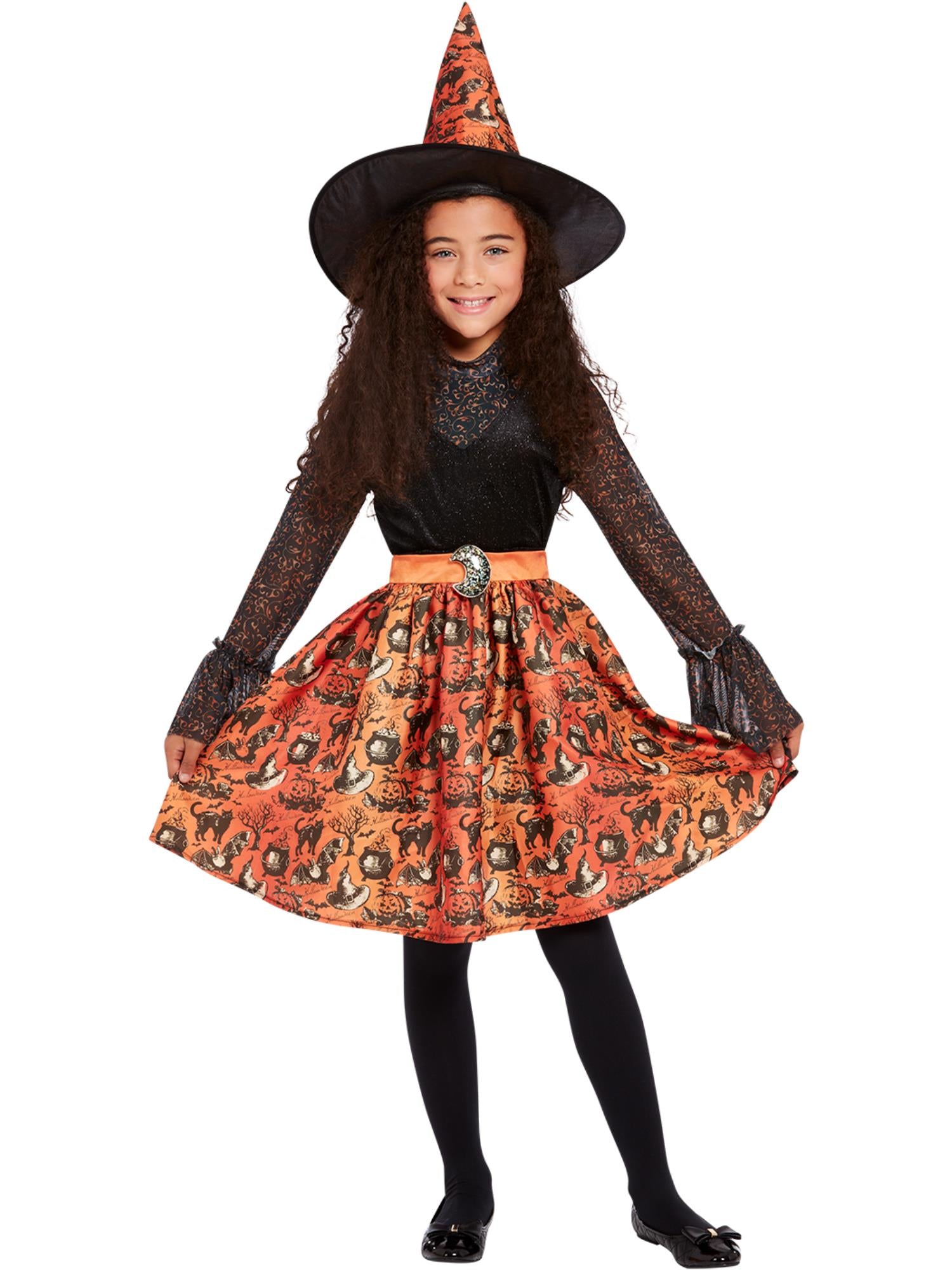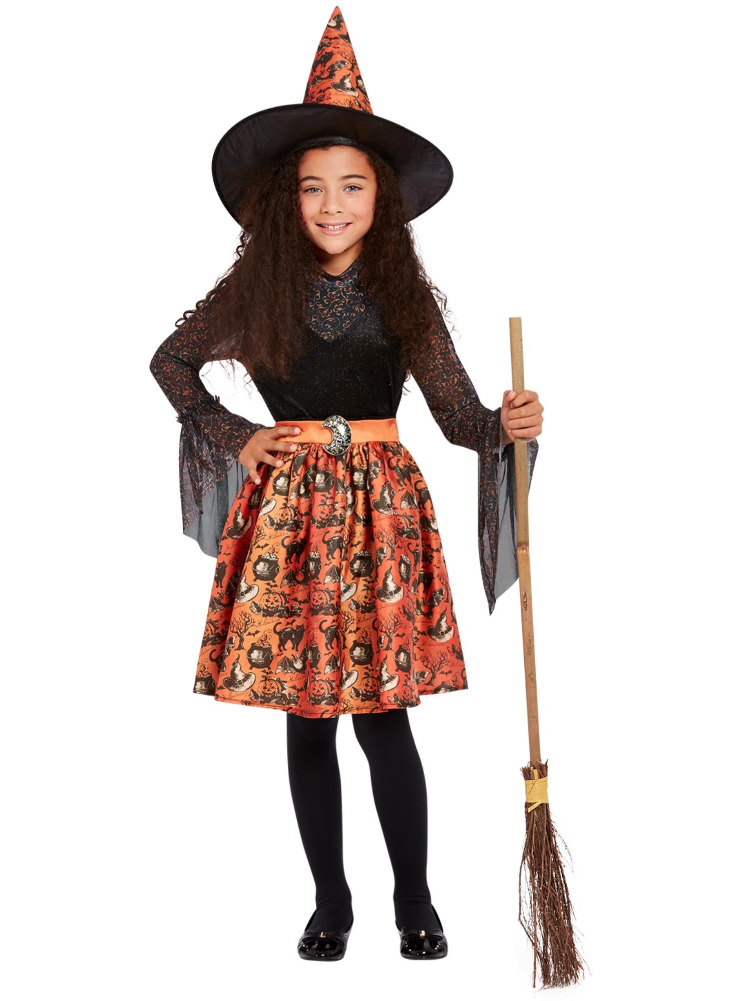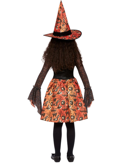 Disfraz de bruja vintage, Naranja, Vestido y sombrero