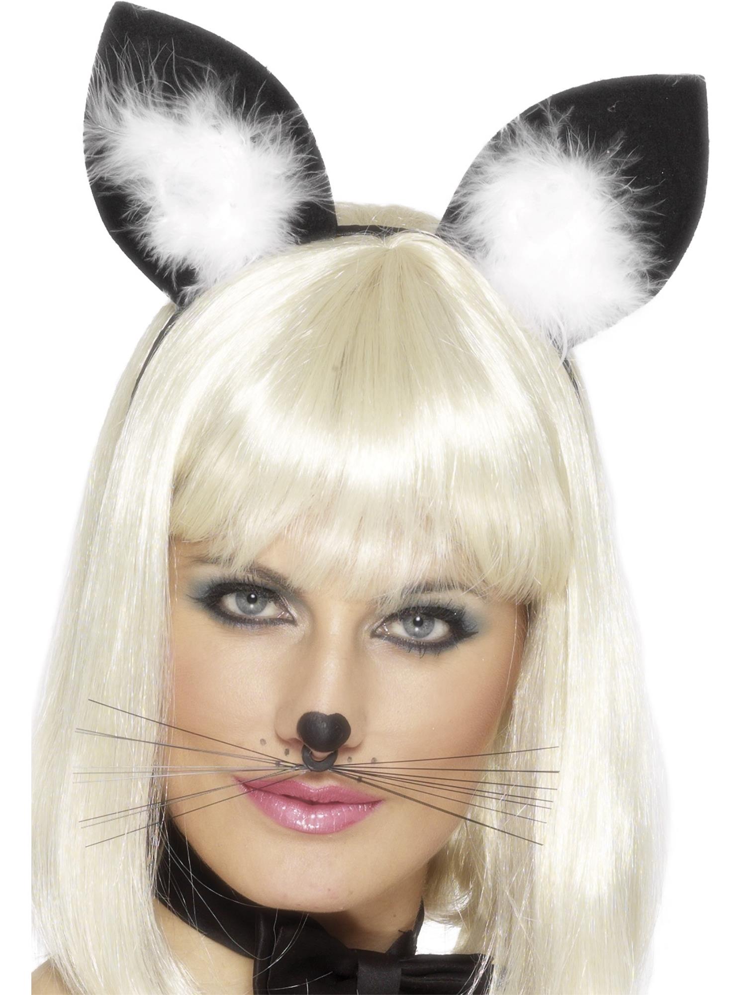 Cat Ears, Black with Marabou Trim on Headband