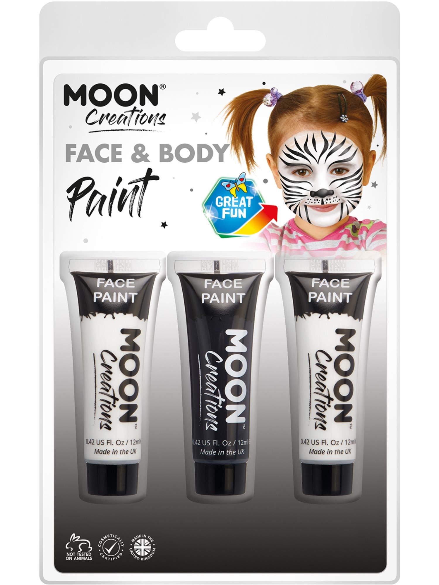 Moon Creations Face & Body Paint, 12ml Clamshell, Monochrome - White, Black, White