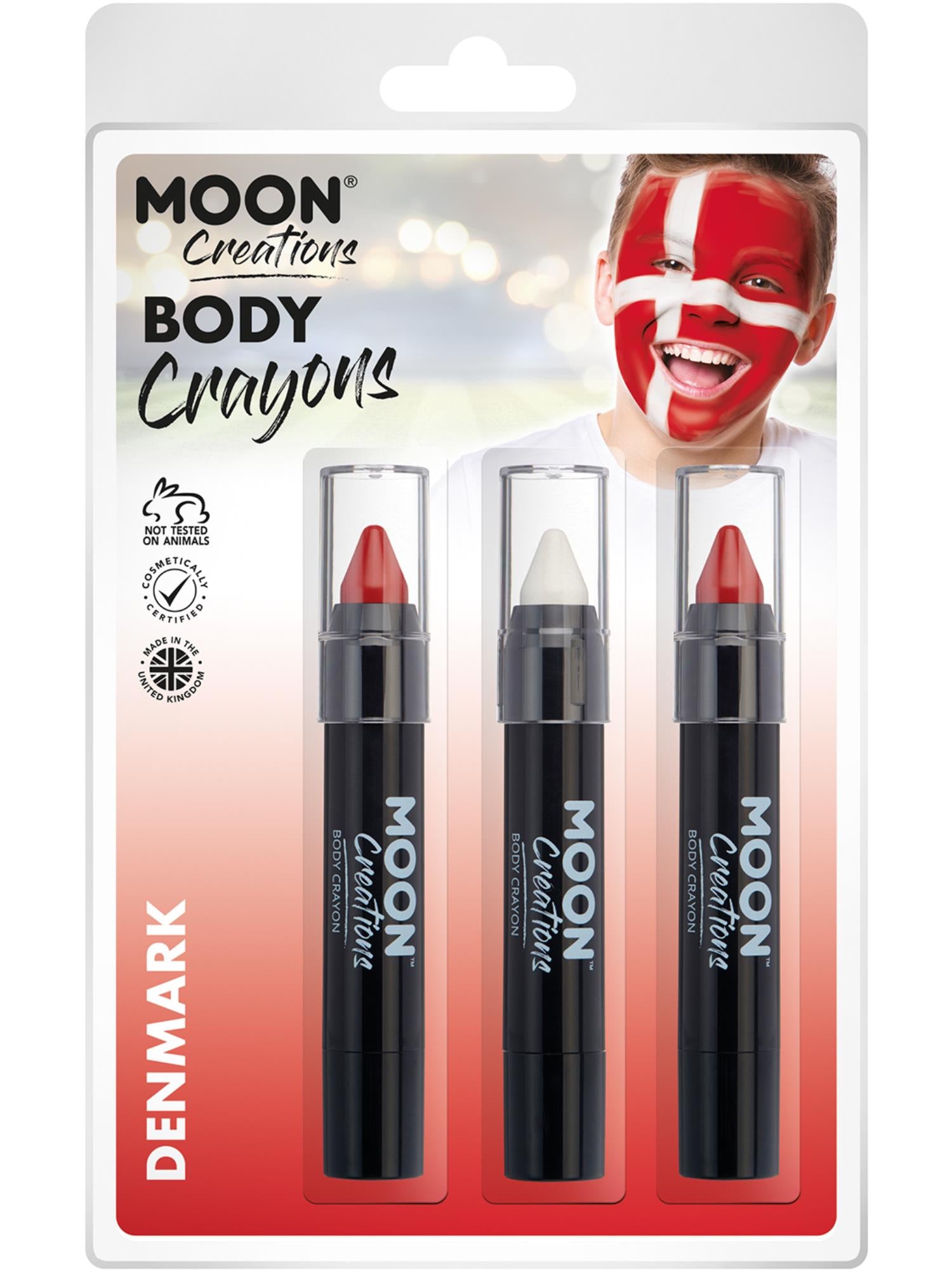 Moon Creations Body Crayons, 3.2g Clamshell, Denmark - Red, White, Red