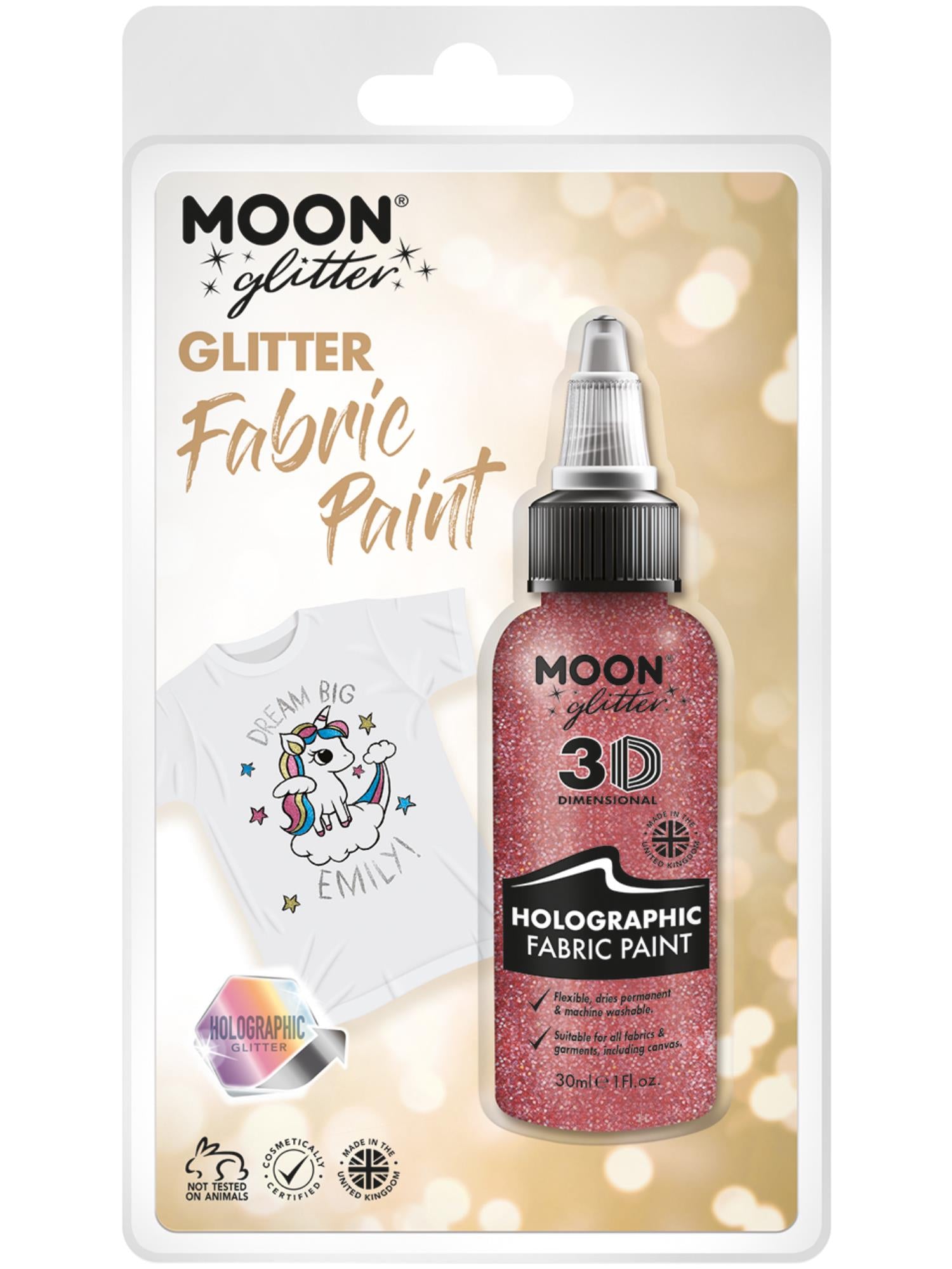 Moon Glitter Holographic Glitter Fabric Paint Pink, Clamshell, 30ml