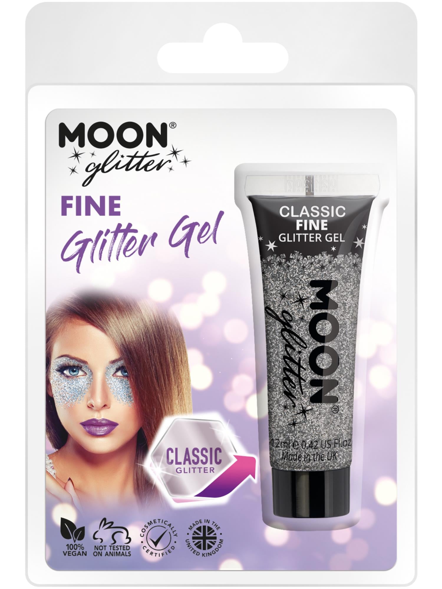 Moon Glitter Classic Fine Gliter Gel, Silver Clamshell, 12ml
