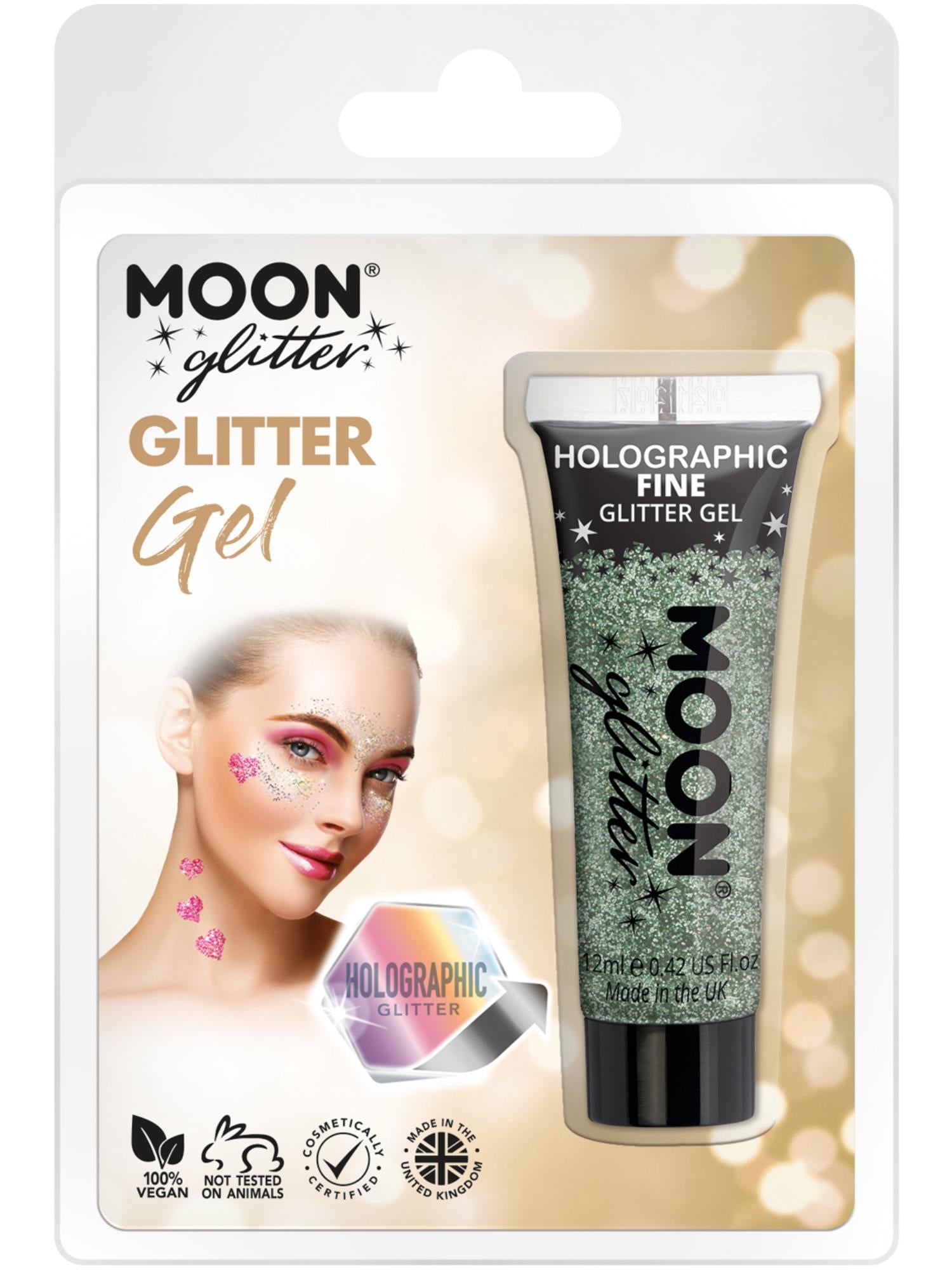 Moon Glitter Holographic Fine Glitter Gel, Green Clamshell, 12ml