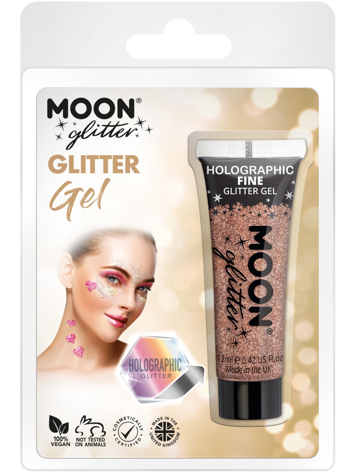 Moon Glitter Holographic Fine Glitter Gel Rose Gold, Clamshell, 12ml