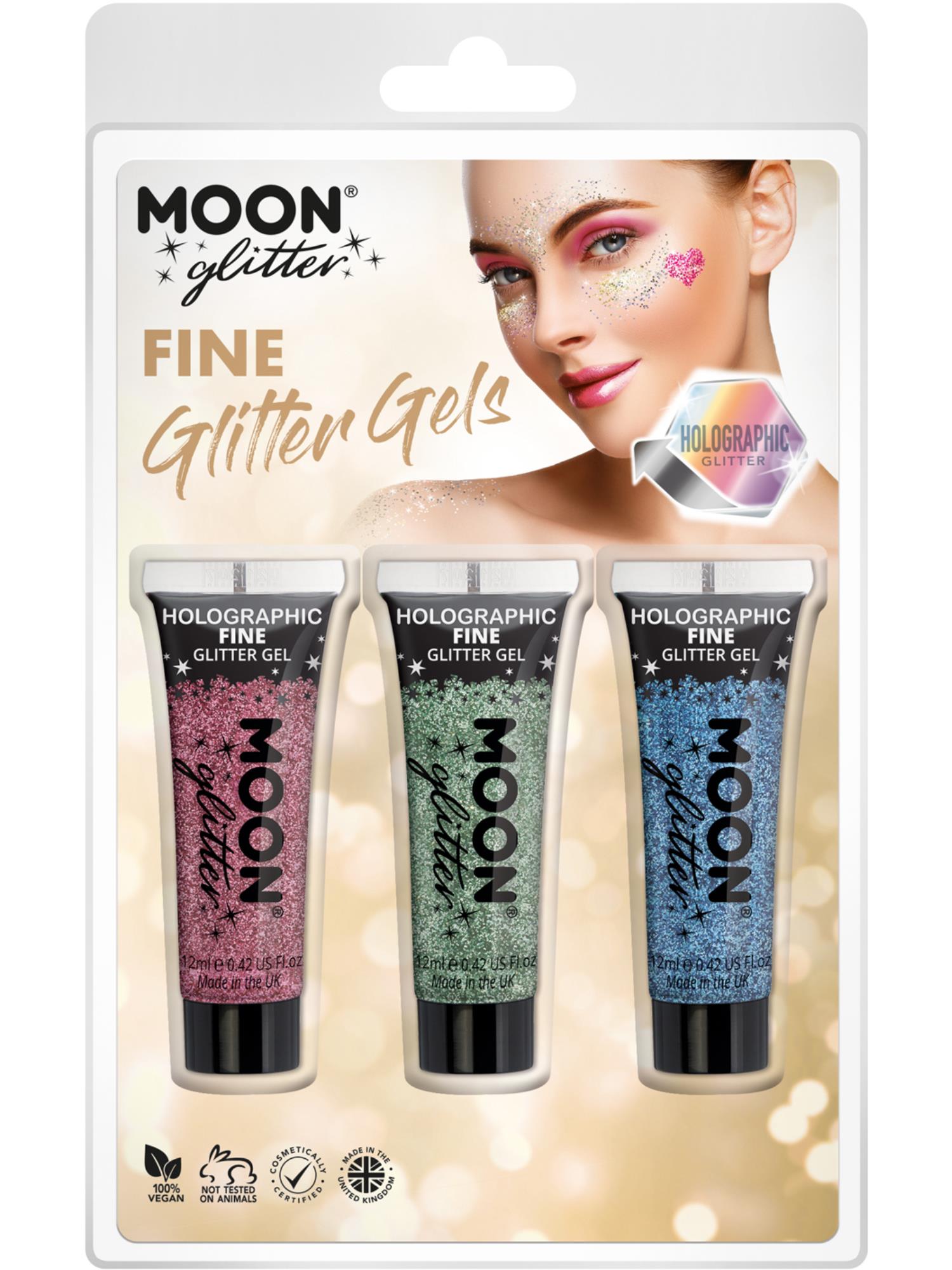Moon Glitter Holographic Fine Glitter Gel, Clamshell, 12ml - Pink, Green, Blue