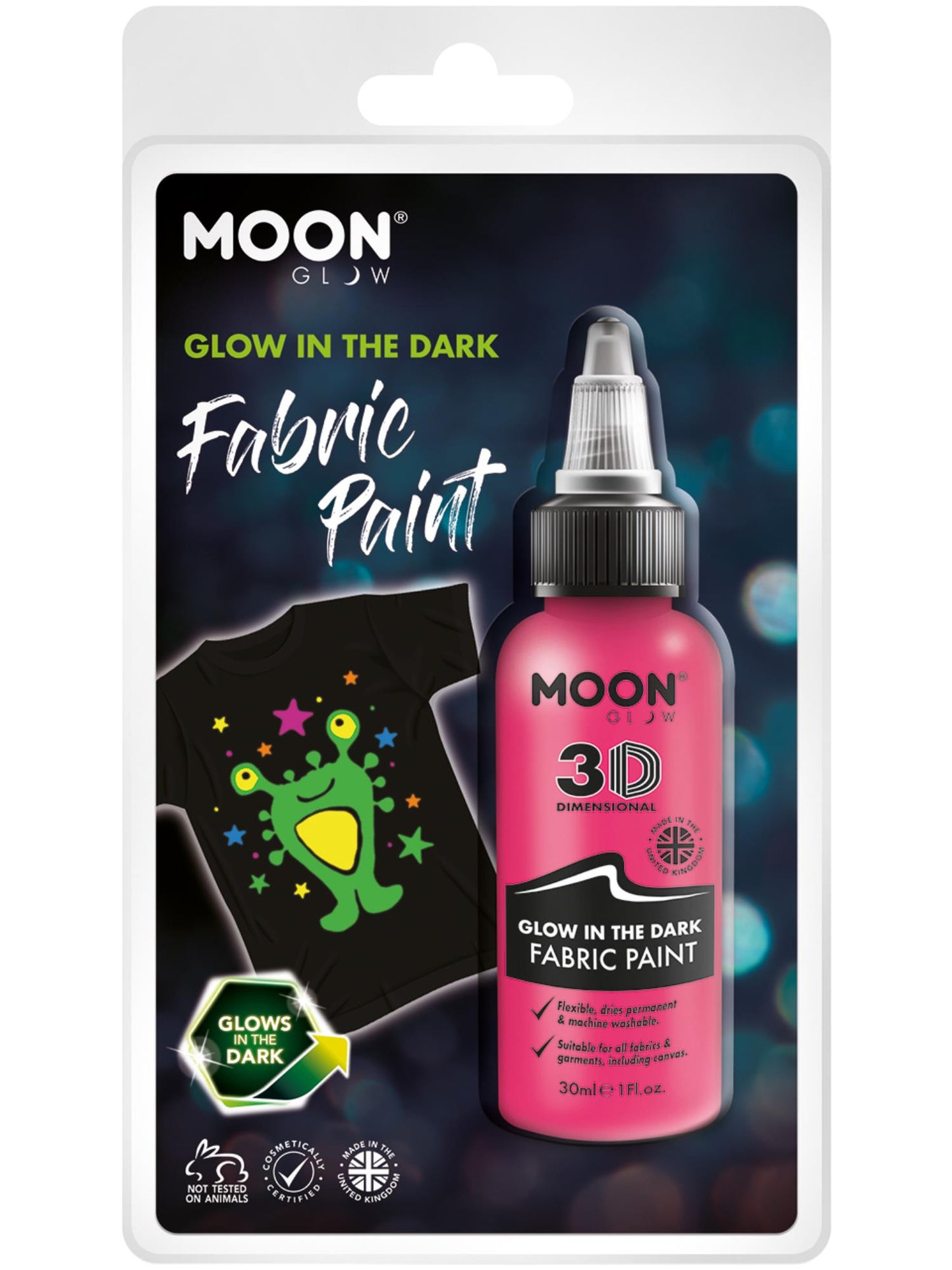 Moon Glow - Glow in the Dark Fabric Paint, Pink 30ml Clamshell