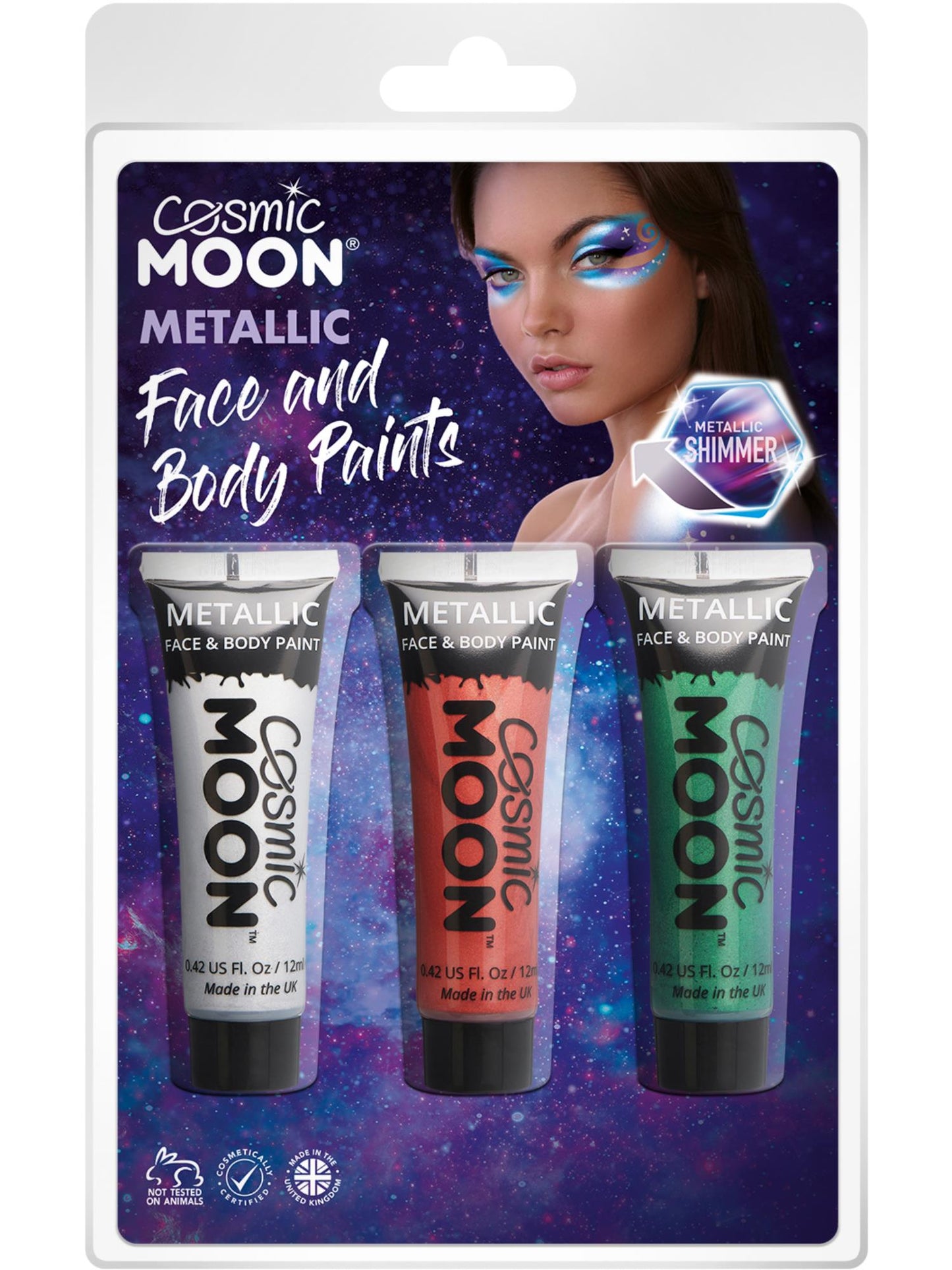 Cosmic Moon Metallic Face & Body Paint, Clamshell, 12ml - Silver, Red, Green